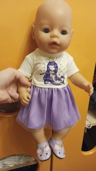 L'ensemble est mignon, mais presque impossible à mettre. Ma fille est incapable à le faire, elle ne peux pas jouer avec toute seule. Le tissus n'est pas extensible alors c'est très difficile à l'enfiler.