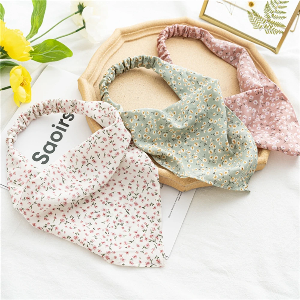 Винтажный шарф для волос с цветочным принтом, треугольные банданы с цветочным принтом для женщин, эластичные резинки для волос в стиле бохо, повязка на голову, аксессуары для волос, 2021