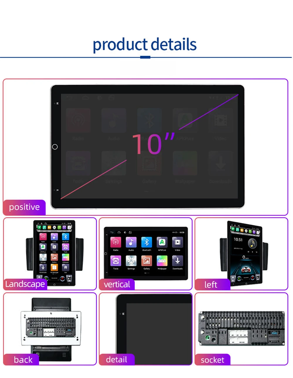 10,1 дюймов Android 10,1 автомобильная стереосистема радио автоматический поворот WIFI мультимедийный проигрыватель, Gps, Bluetooth (голубой зуб) навигации FM лента Регистраторы головное устройство