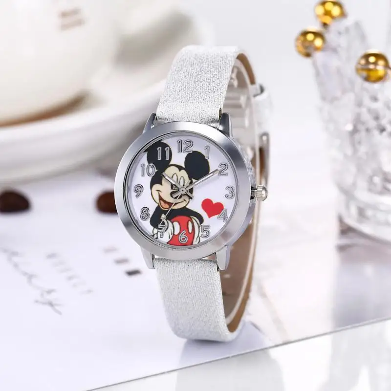 Часы кварцевые для мальчиков и девочек, классические простые детские часы с изображением Диснея и звезд Микки Мауса из кожи
