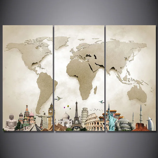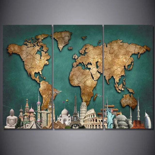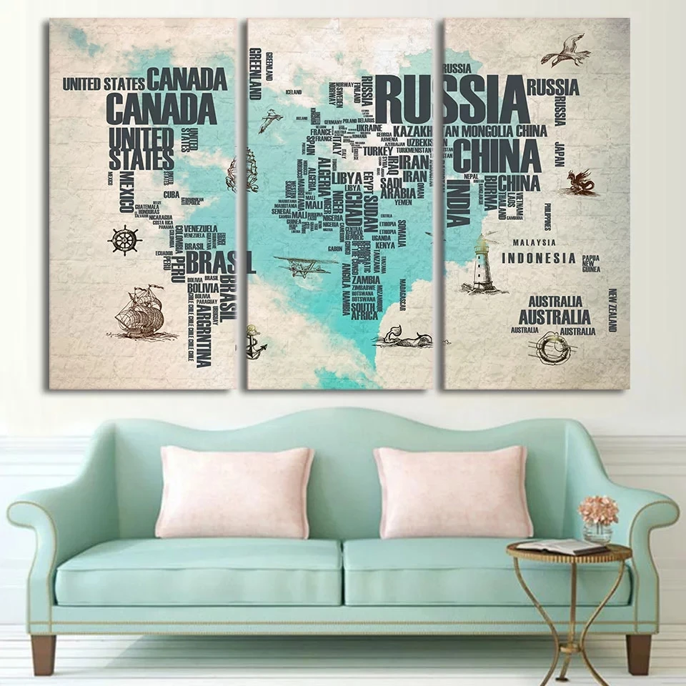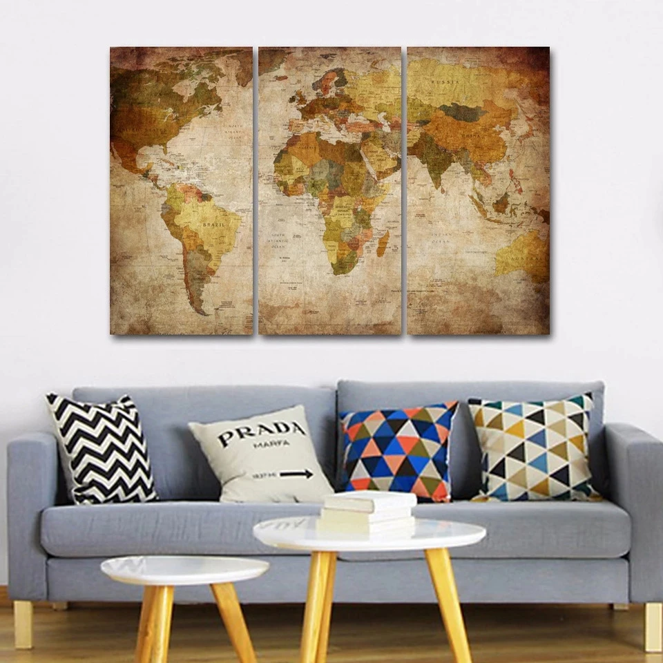 HD Декор печать 3 шт. Холст Искусство винтажная карта мира живопись комната Декор настенное искусство рождественские украшения для дома