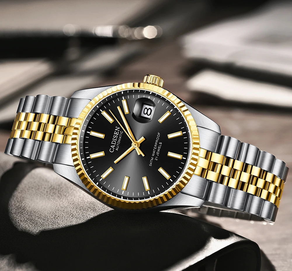 Часы наручные CADISEN Мужские механические, автоматические, из нержавеющей стали