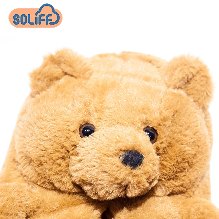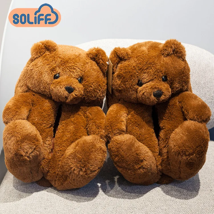 Тапки женские меховые с медвежьим мехом, теплые домашние тапочки с ...