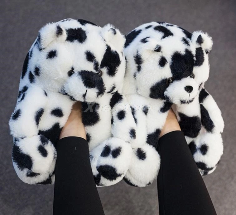 Плюшевые шлепанцы Teddy Bear для женщин, рождественские тапки, дом с милым мультяшным медведем, искусственный мех, сланцы, женские меховые шлепанцы