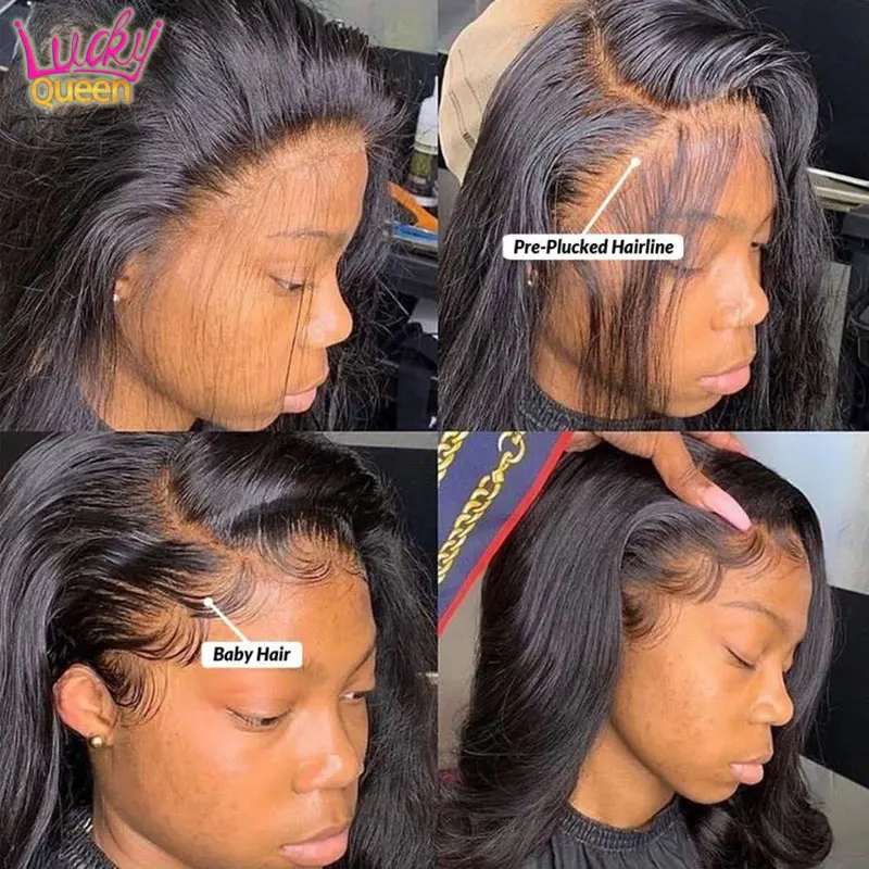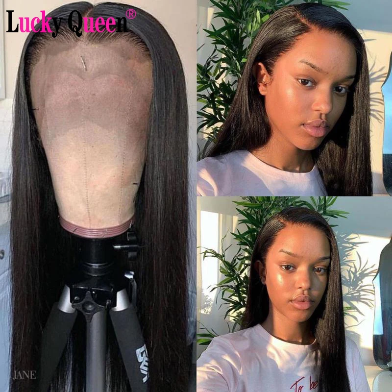 Перуанские прямые 13X4 HD кружевные передние человеческие волосы парики для женщин 34 дюйма длинные прямые 4X4 парики на шнурках Lucky Queen парики для волос