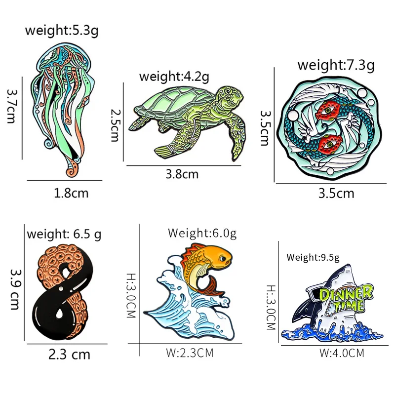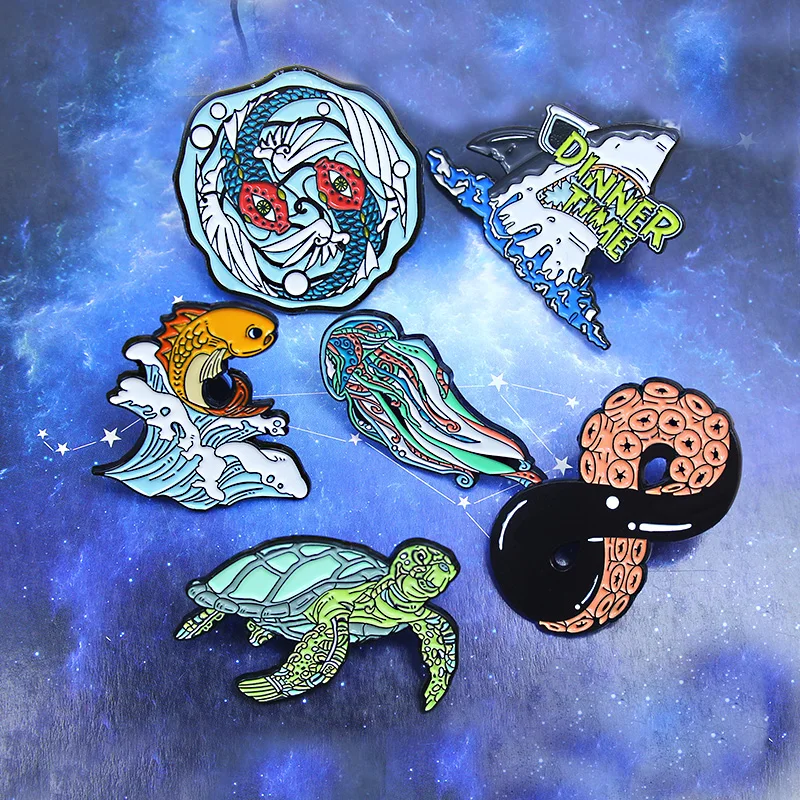 Брошь в виде морской рыбы, животного, акулы, черепахи, медузы, золотой рыбы, осьминога, Кита, эмалированная булавка, значок, ювелирное изделие для детей