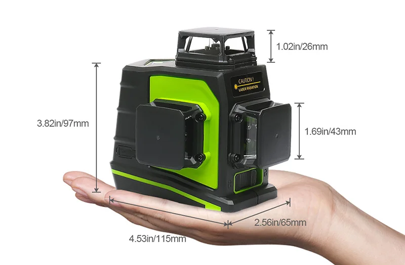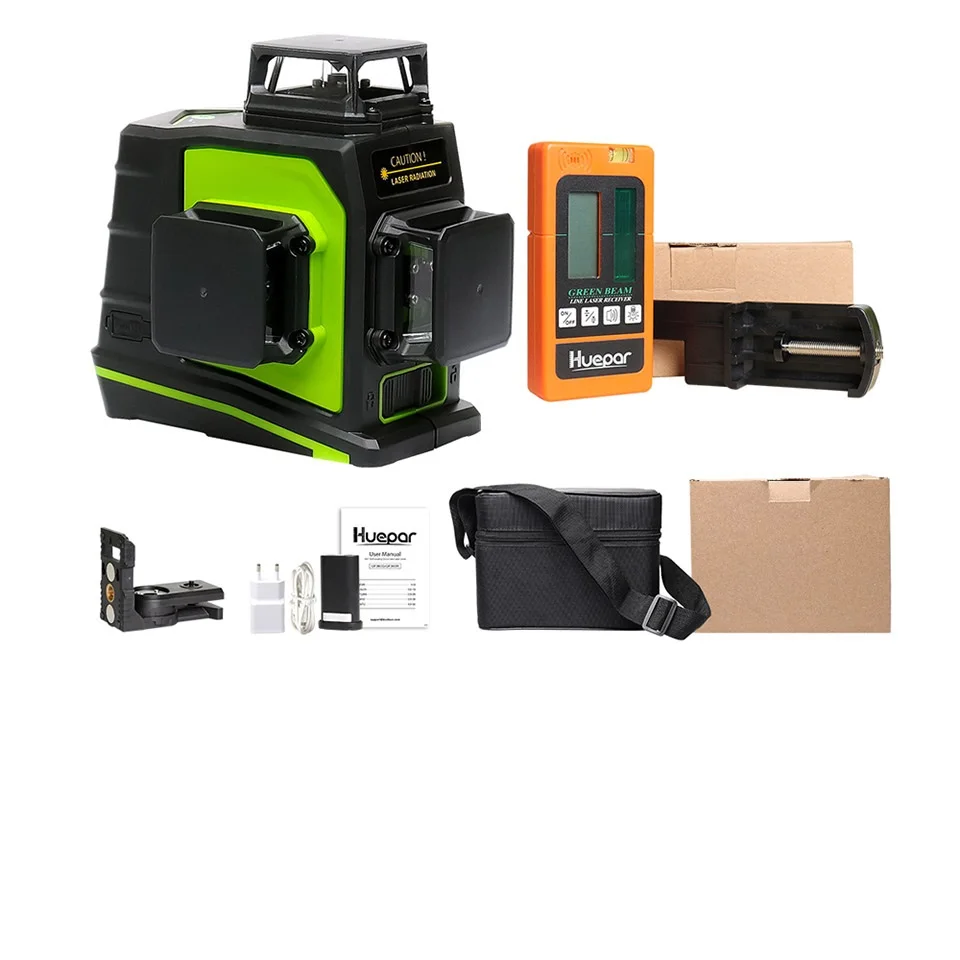 Уровень лазерный Huepar, 12 линий, зеленый лазер, самовыравнивающийся, 360 градусов, вертикальный и горизонтальный, с ЖК-приемником, зарядка от USB