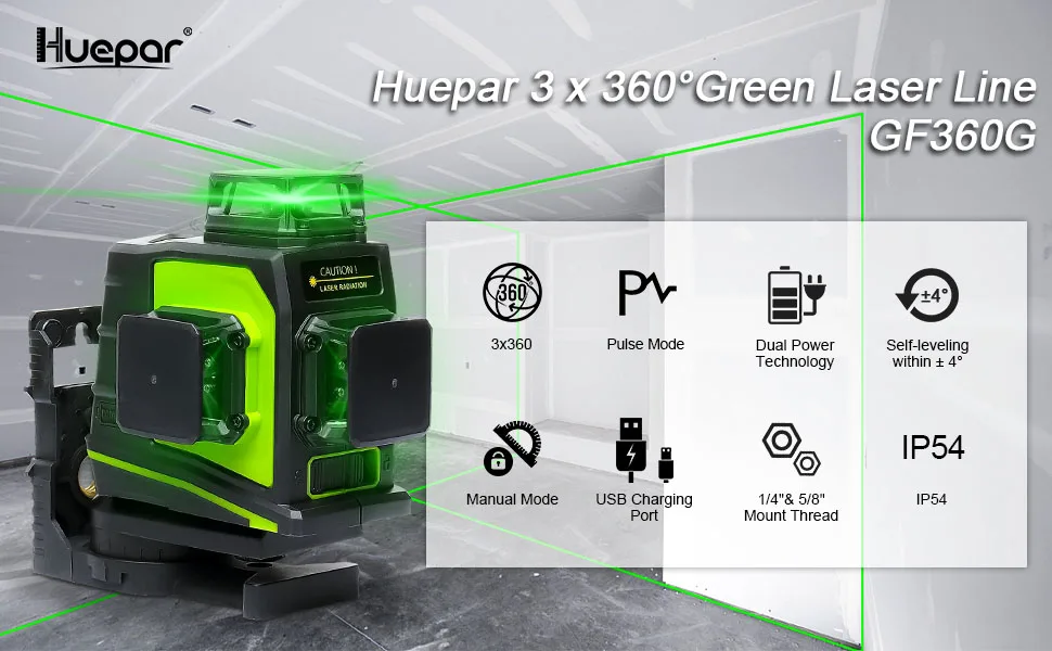 Лазерный уровень HUEPAR GF360, самонивелирующийся 12-линейный зелен...