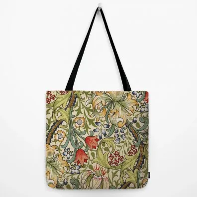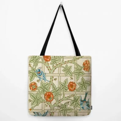 Сумка-тоут для покупок с изображением растений Уильяма Морриса, водонепроницаемая хлопчатобумажная Холщовая Сумка через плечо оранжевого и фиолетового цветов
