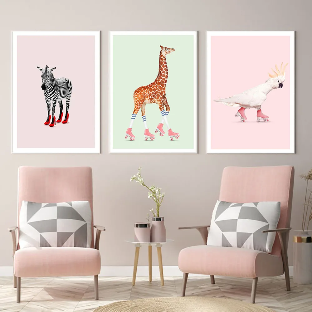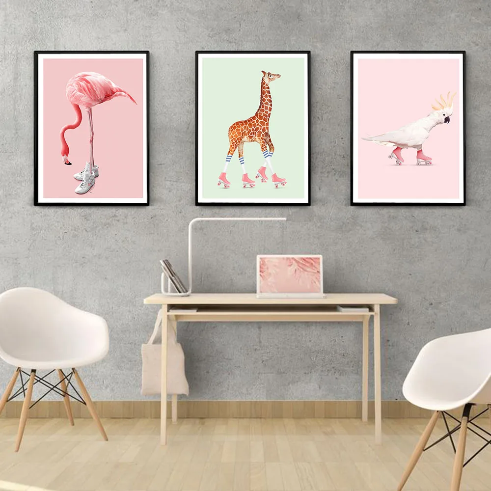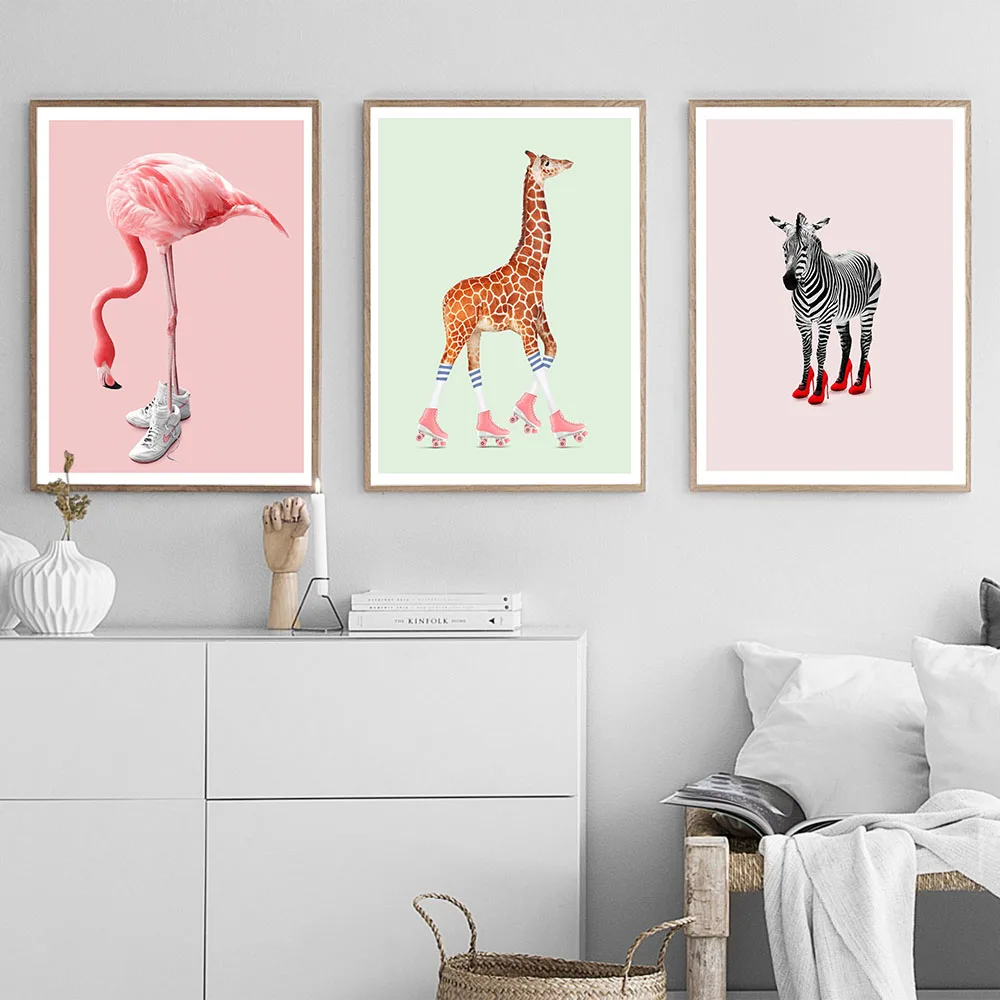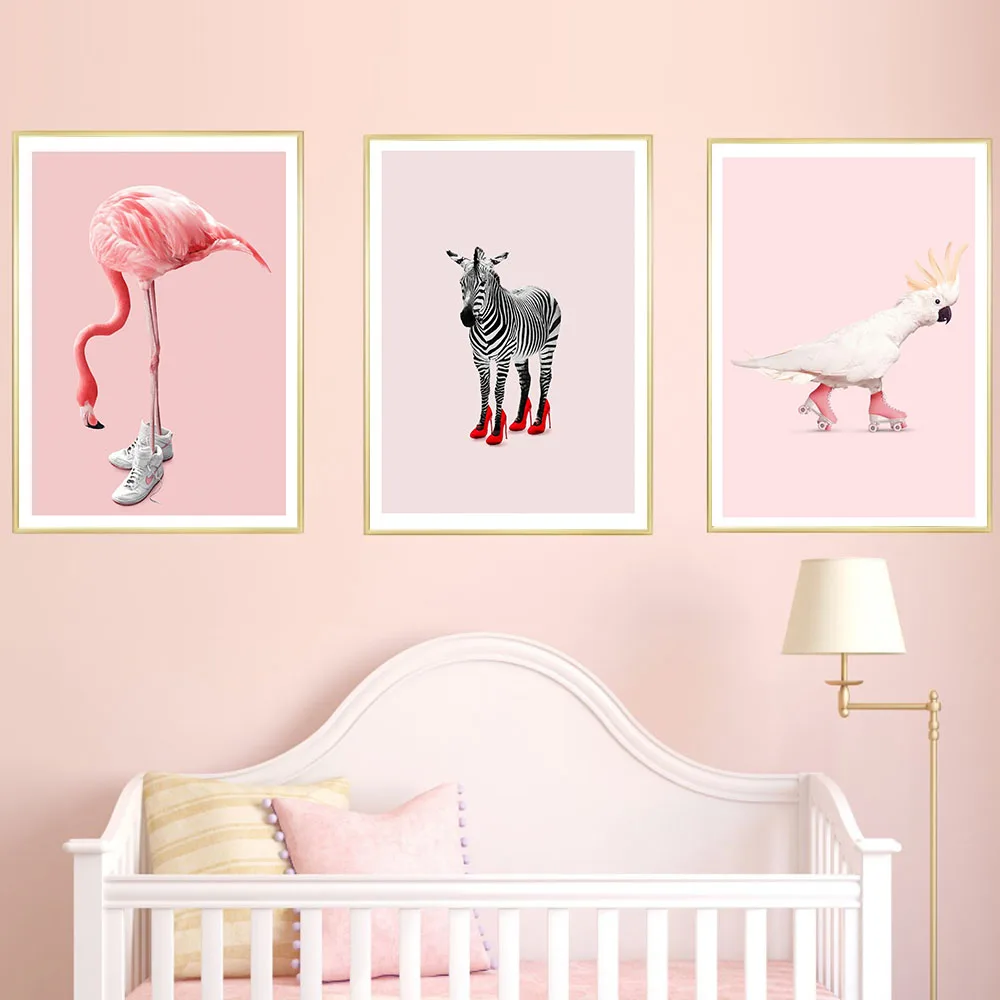 Скандинавский Стиль розовый плакат Фламинго кроссовки холст для живописи и принты настенные картины для Гостиная Декор интерьера