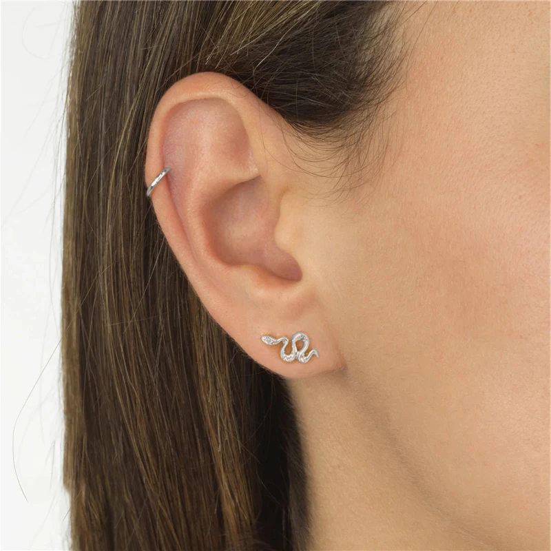 Женские серьги-гвоздики в форме змеи из серебра 2021 пробы