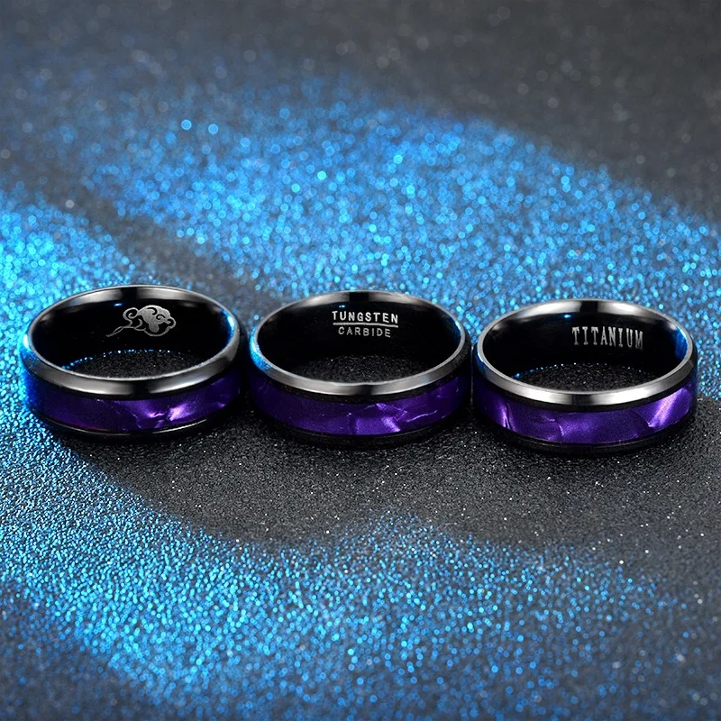 Классическая титановая сталь палец кольцо фиолетовые градиентные Цвет 8 мм в винтажном стиле; Парные обручальные кольца для мужские и женские тапочки для влюбленных простые ювелирные изделия