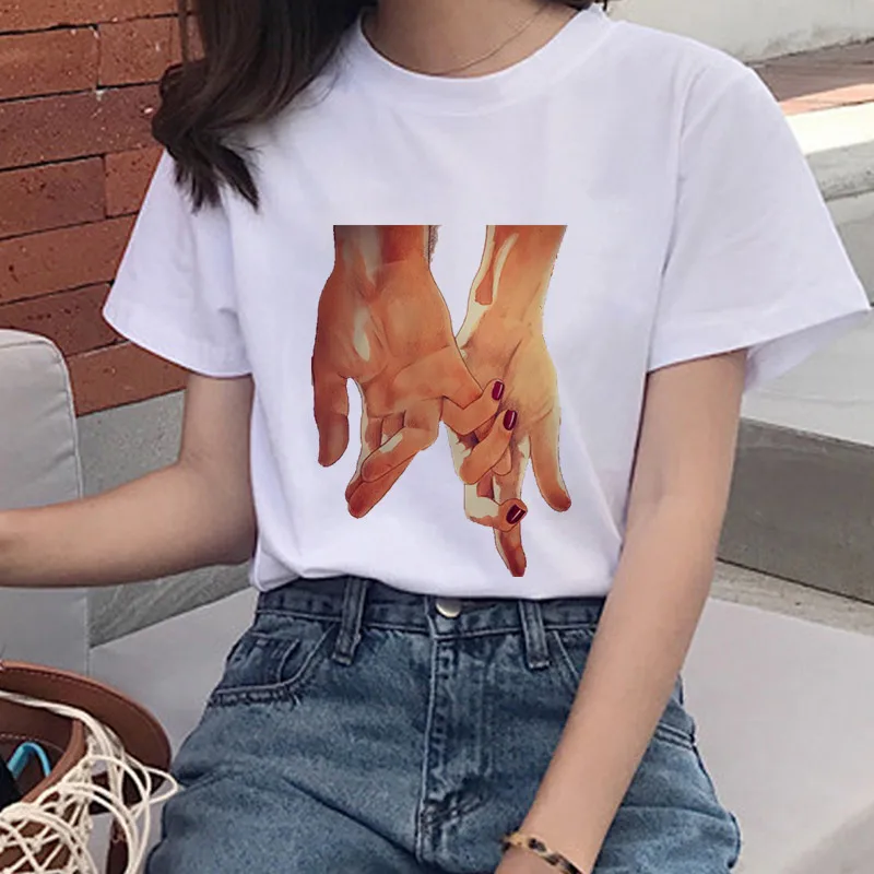 Женская футболка жеста Харадзюку Повседневная футболка с круглым вырезом с коротким рукавом женские топы Харадзюку белая футболка 2020 Летняя женская одежда
