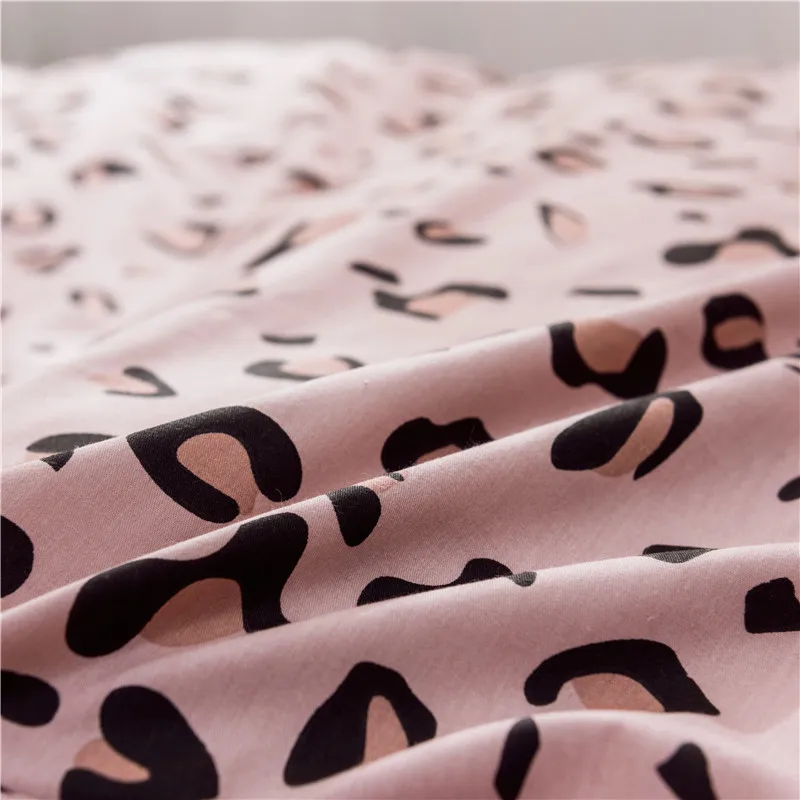 Мы предоставляем дропшиппинг этого продукта, пожалуйста, свяжитесь со мной, если вы заинтересованы!Розовый набор постельного белья леопардовой расцветки 100% хлопок постельное белье пододеяльник + наволочки одиночный двойной Королевский размер набор пододеяльников