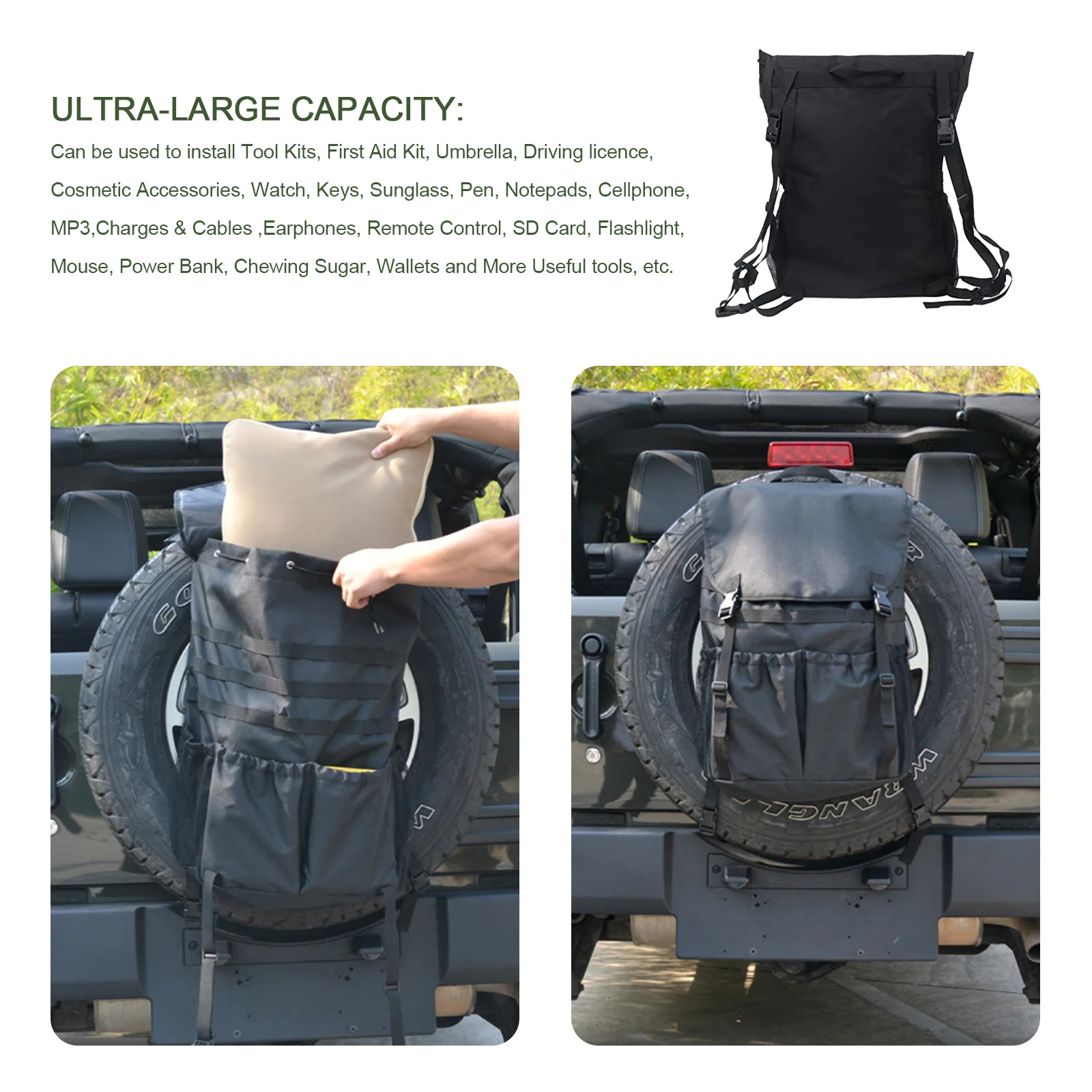 7. Многофункциональные продукты: вы можете удалить его из запасной шины и использовать его в качестве рюкзака для себя.