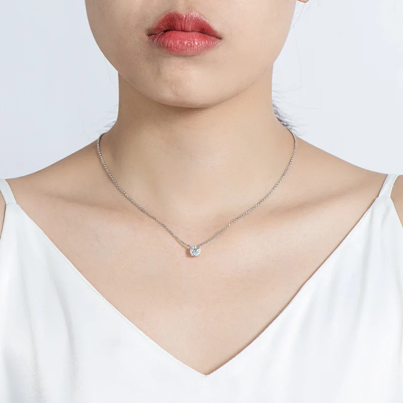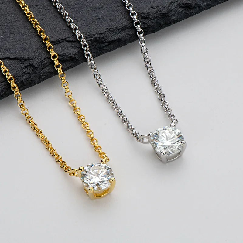 Кулон с муассанитом DF Color VVS1, ожерелье с превосходной огранкой из круглого муассанита 6,5 карат, с покрытием из белого золота 18 К, ювелирные изделия JE-09