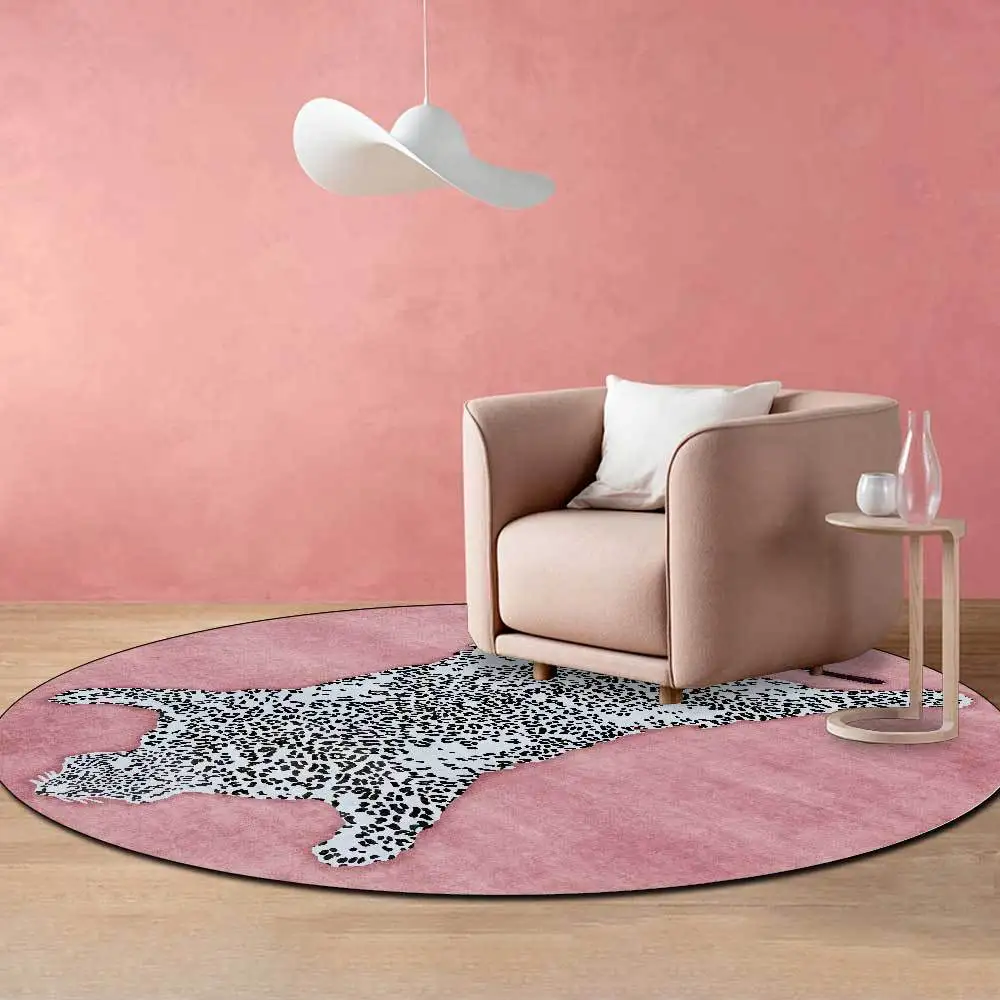 Украшение для салона, круглый модный розовый Леопардовый принт для девочек, нескользящий коврик для спальни, ковры для гостиной
