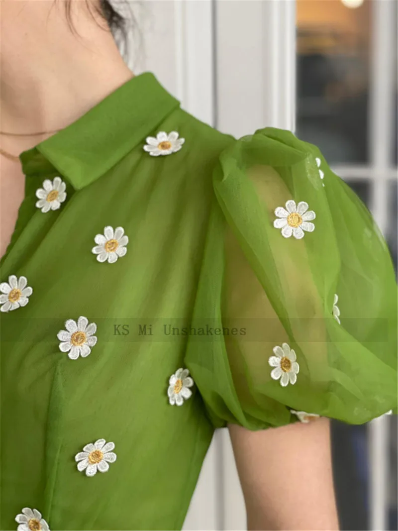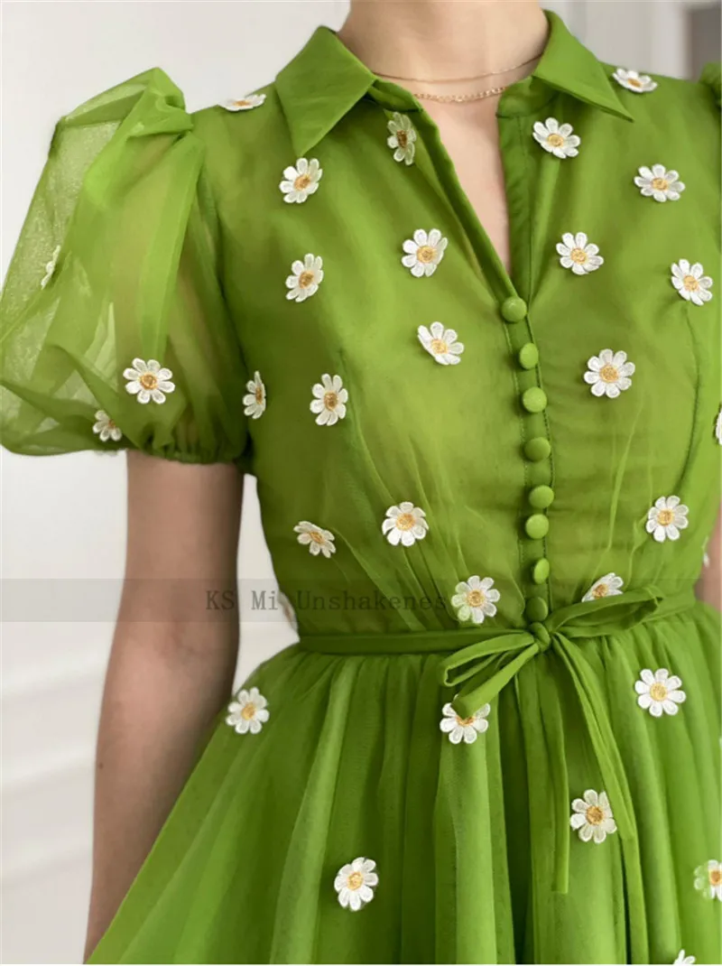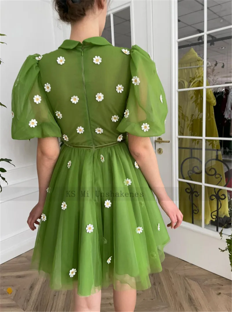Зеленые Короткие платья для выпускного вечера 2021, платье-трапеция с воротником-рубашкой и коротким рукавом, вечерние платья, халаты выше колена, коктейльное платье