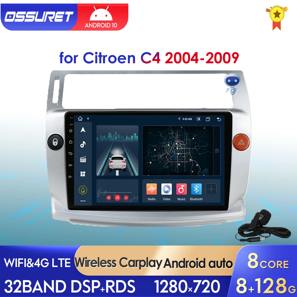 Автомобильная Мультимедийная система 2Din, Android 10, для Citroen C4 C-Triumph C-four 2004 2005 2006 2007 2008 2009, GPS, Wi-Fi, USB