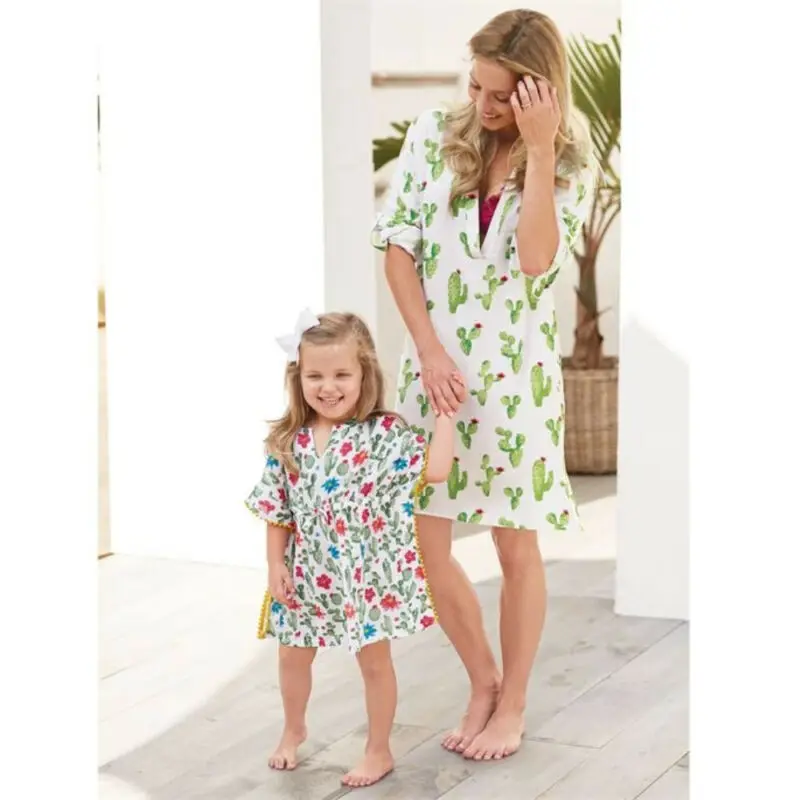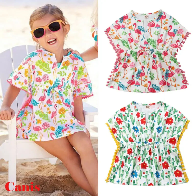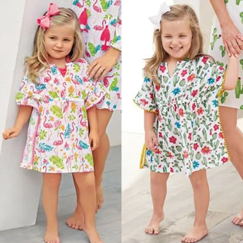 Платье lioraitiin для маленьких девочек, пляжный сарафан с рисунком фламинго, кактуса, цветов, хлопково-льняные платья, чехол для бикини