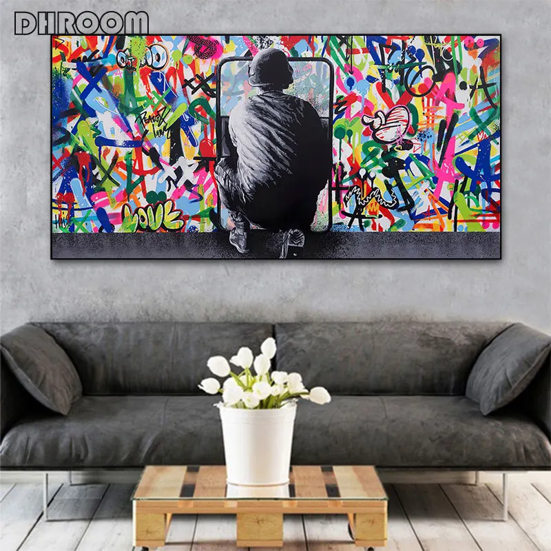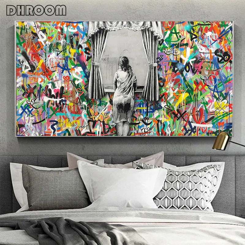 Уличное искусство Бэнкси Граффити постер печать за занавеской холст картины Куадрос настенные картины для гостиной домашний декор