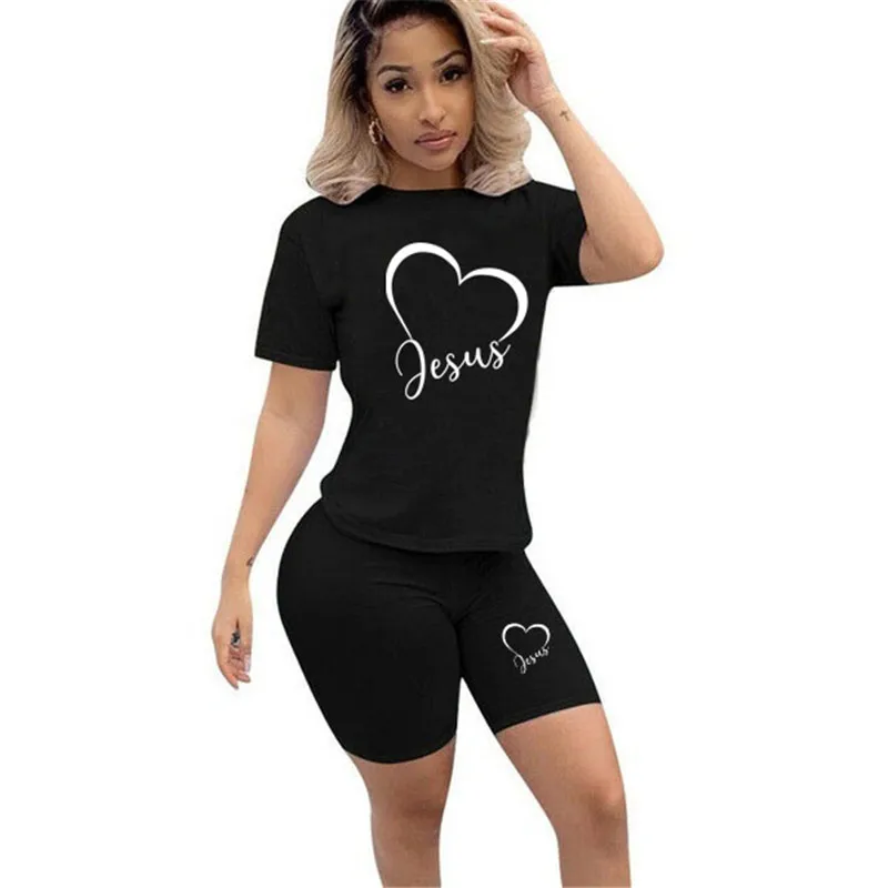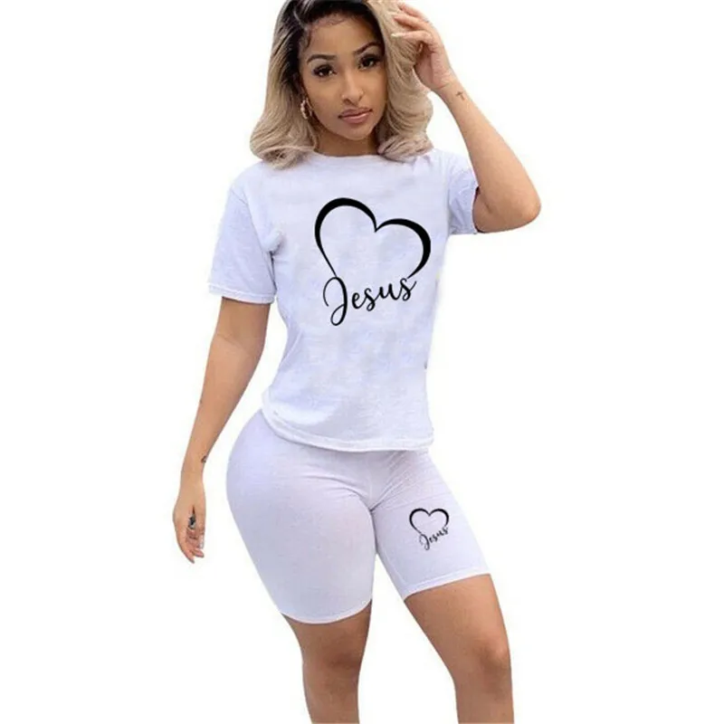 Женский спортивный костюм, летний комплект из двух предметов, футболка с коротким рукавом и принтом, шорты со средней талией, размера плюс, S-4Xl