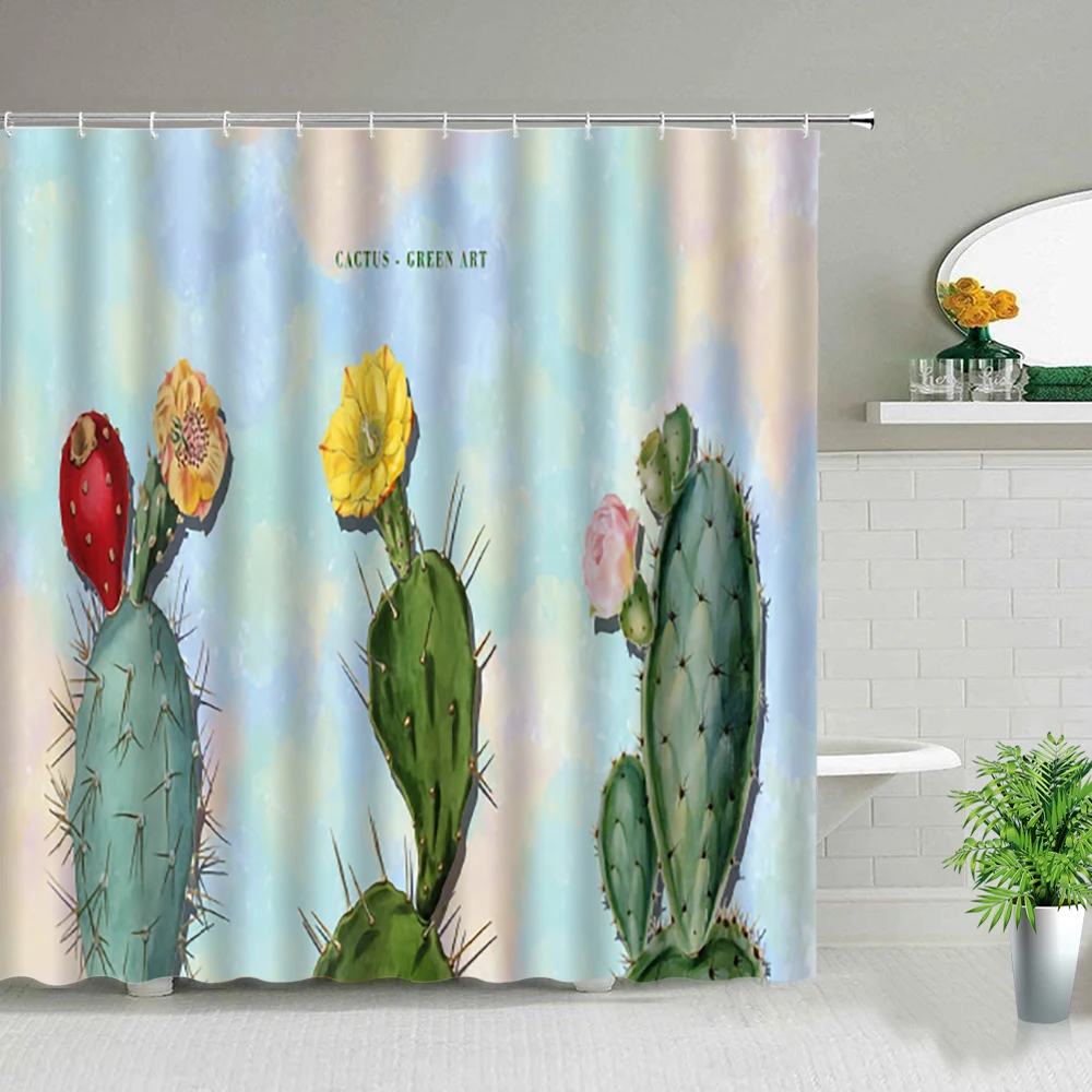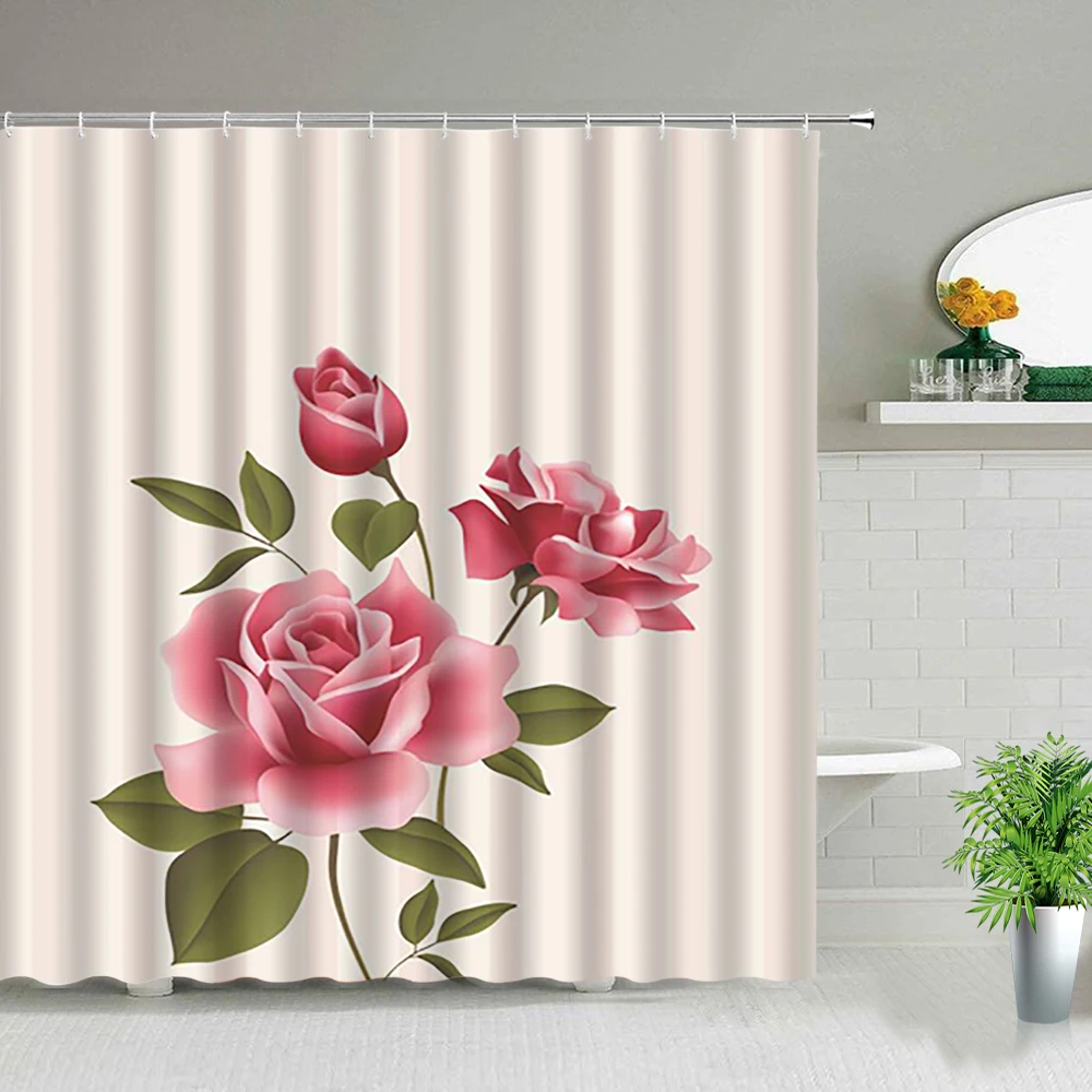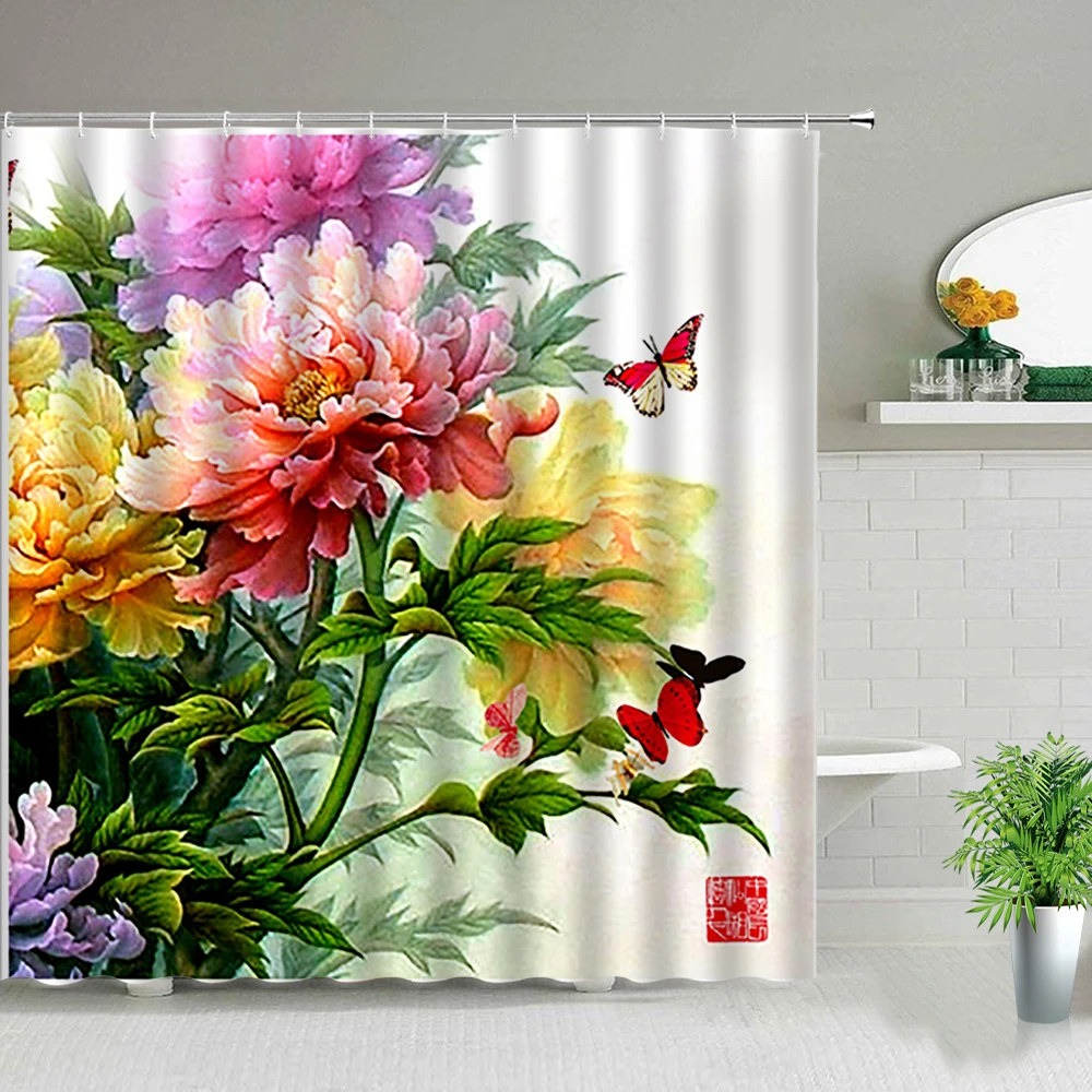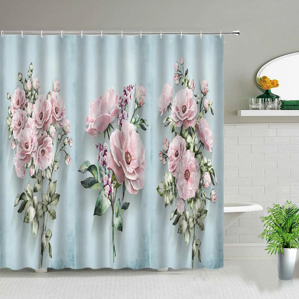 Занавеска для душа с изображением цветов и растений, тканевый Декор для ванной комнаты, с крючками, с розами, подсолнухом, КАКТУСОМ, бабочкой, цветочным пейзажем