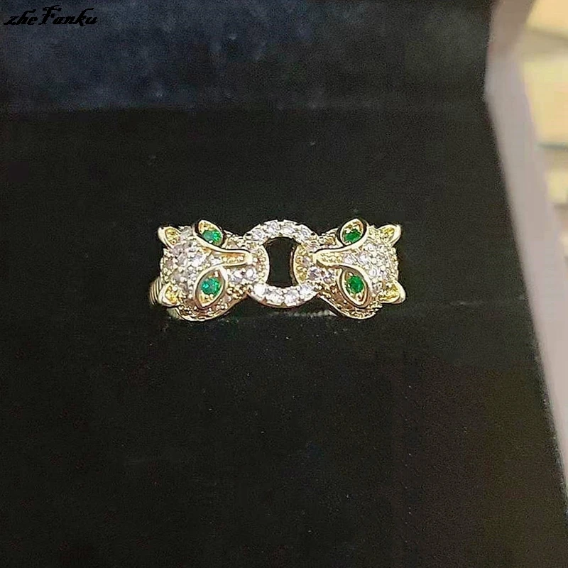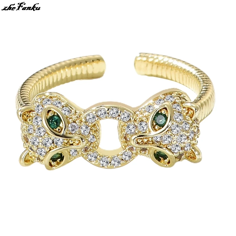 Циркон двойной головой Пантеры кольцо популярные рубашки в стиле хип-хоп Pnunk Открытое кольцо Прохладный Для женщин Регулируемый леопардовые аксессуары для пальцев