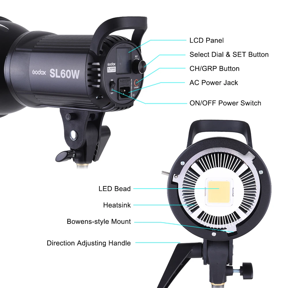 Светодиодная лампа Godox SL-60W 5600K 60 Вт, беспроводной пульт дистанционного управления с креплением Bowens для фотостудии, фотосъемки, видеозаписи, белая версия