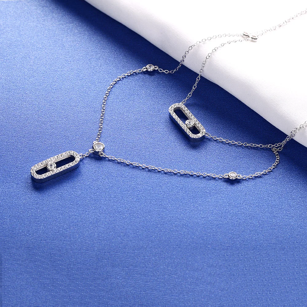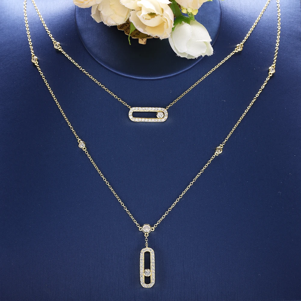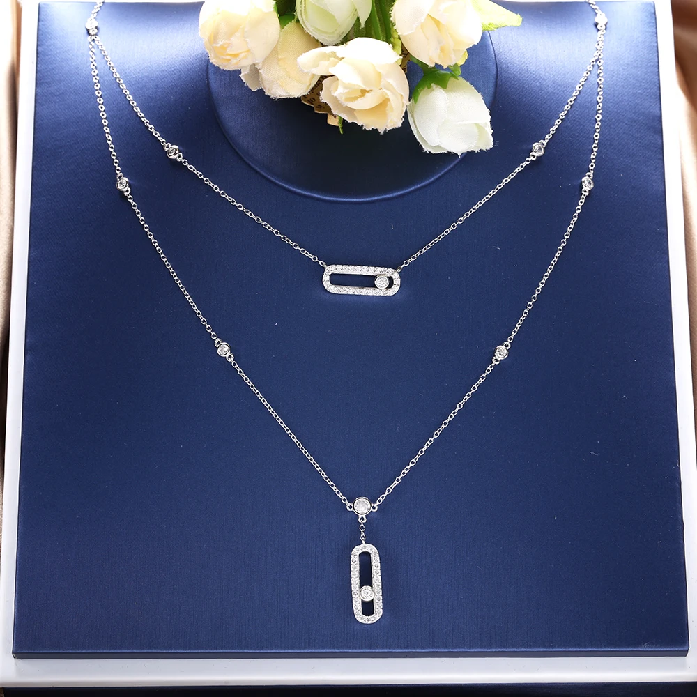 Женское Двухслойное ожерелье из серебра 925 пробы с драгоценными камнями