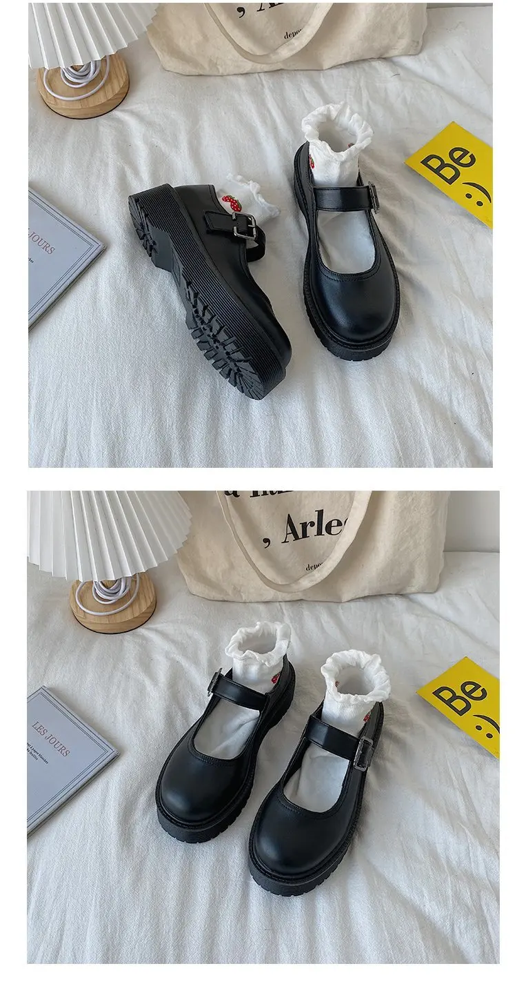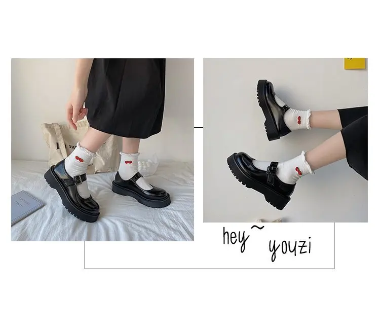 Туфли Lolita на платформе в стиле Харадзюку, женские туфли Мэри Джейн, черные кожаные туфли, туфли с пряжкой на низком каблуке для девушек, 2022