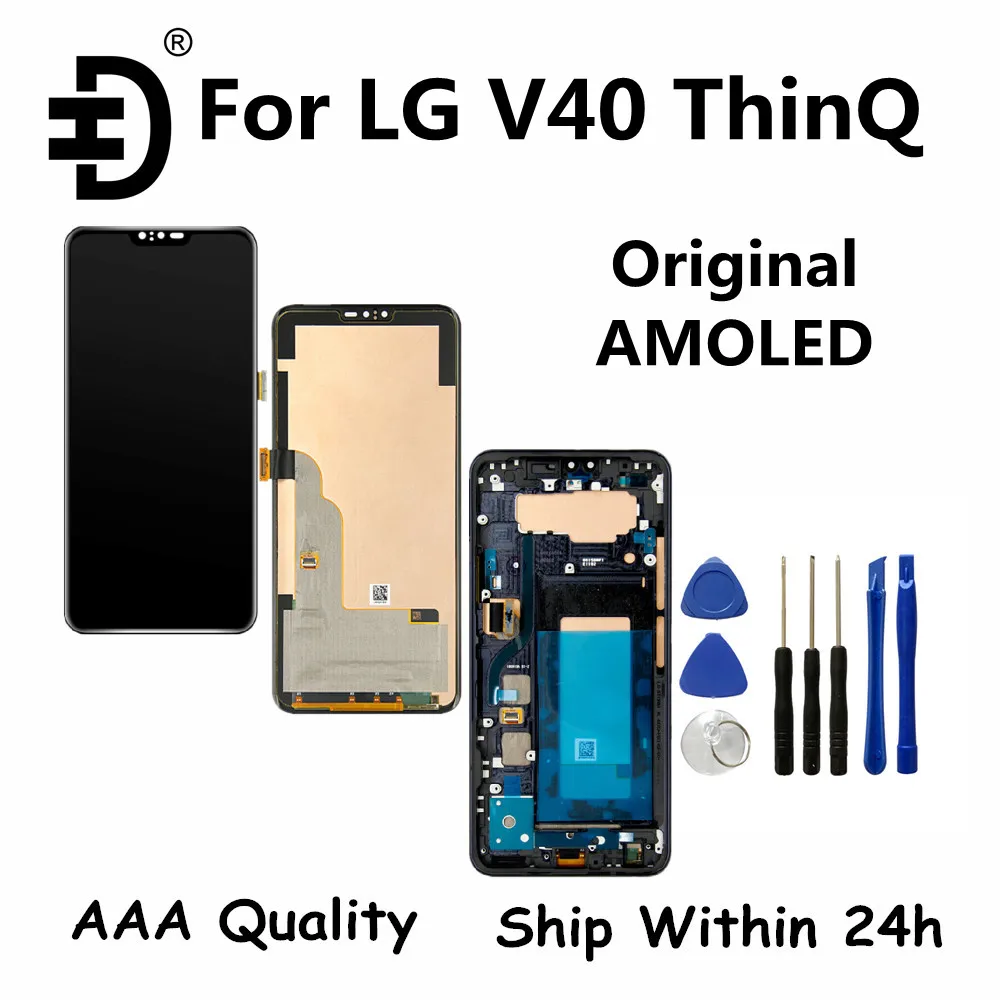 Оригинальный AMOLED дисплей 6,4 дюйма для LG V40 ThinQ, ЖК-дисплей с рамкой, сенсорный дигитайзер в сборе для LG V40 ThinQ, сменный экран