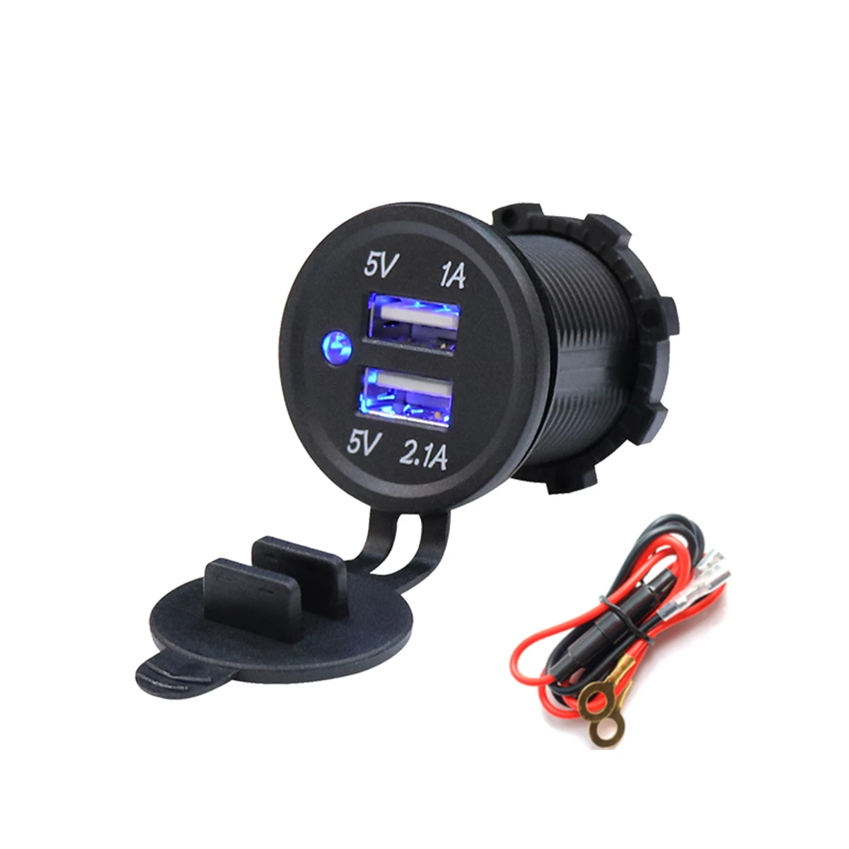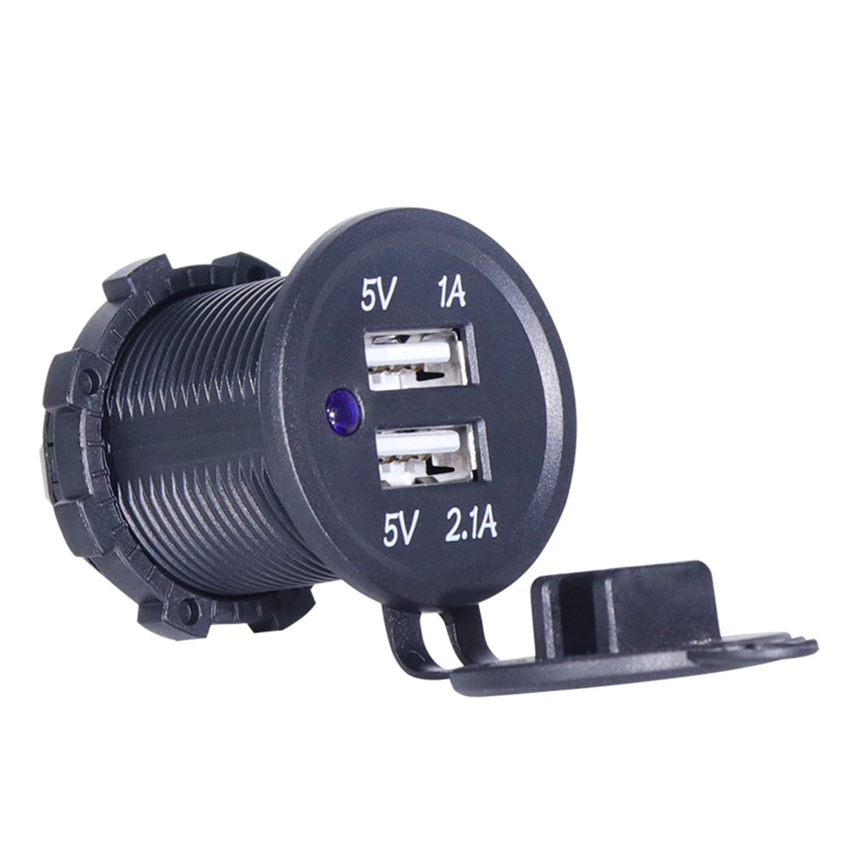 Розетка для зарядки с двумя USB-портами, 5 В, 3,1 А, со светодиодным индикатором, для автомобиля, лодки, мотоцикла, RV, телефона