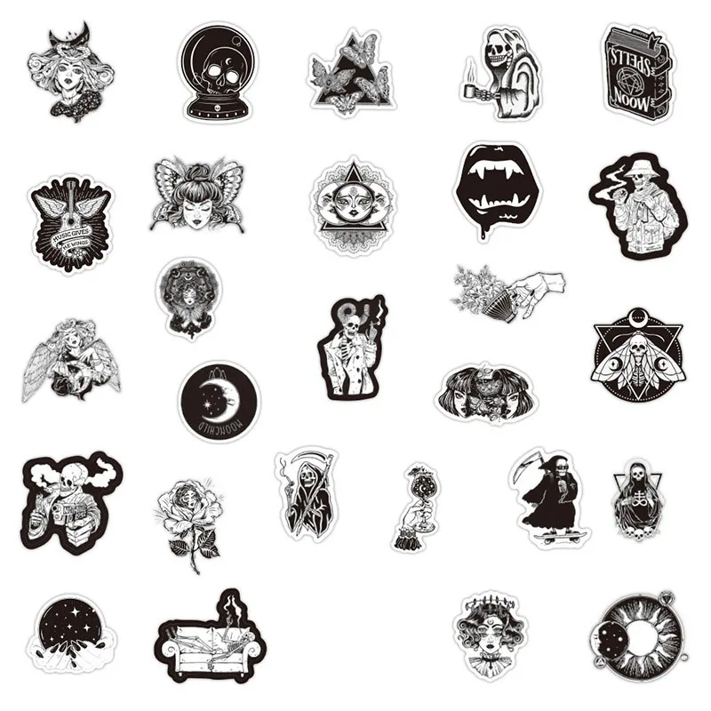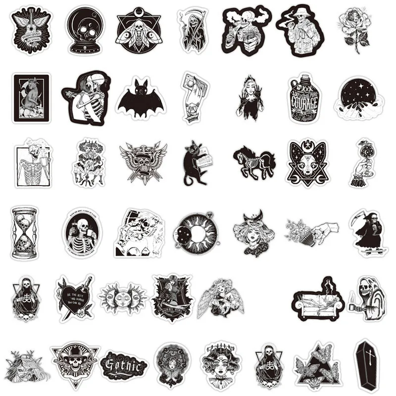 Стикеры черно-белые водостойкие в готическом стиле, 103050 шт.