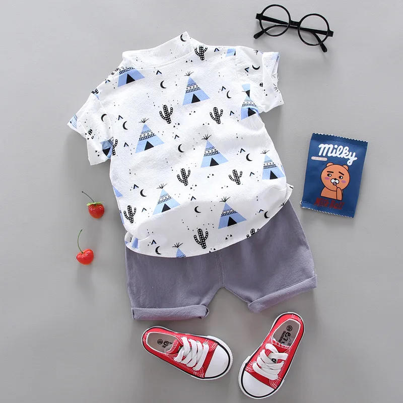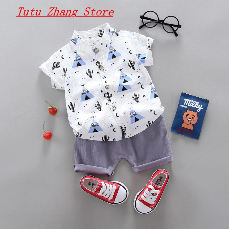 Новинка Детская летняя корейская мода повседневная одежда для маленьких мальчиков рубашка с коротким рукавом шорты Детский спортивный костюм женская одежда