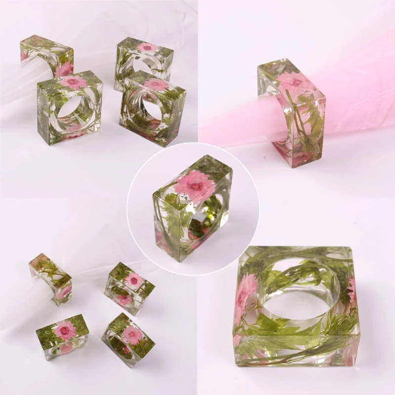 4 формы, минималистичные держатели для салфеток, кольцо из смолы, искусственное круглое, квадратное, шестигранное, пряжки для салфеток, комплект формы из смолы