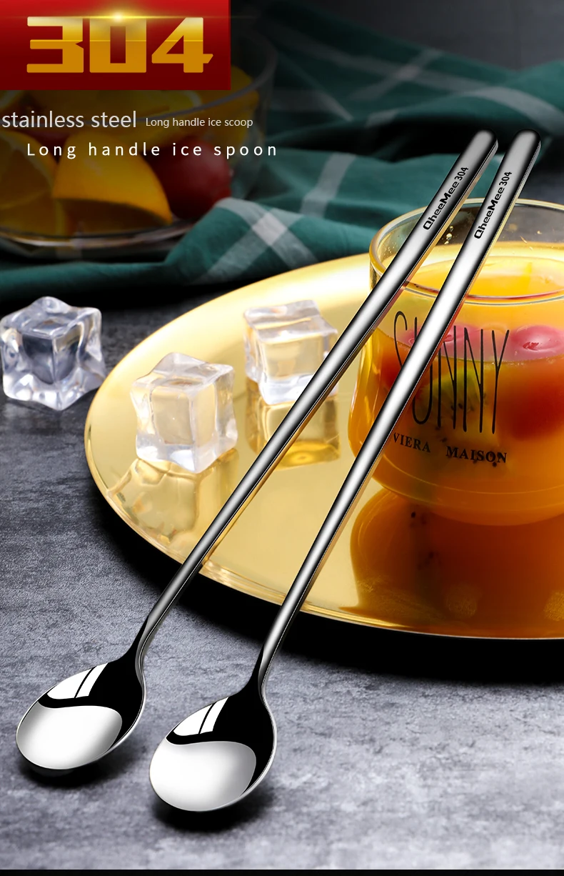 Кофейная ложка с длинной ручкой из нержавеющей стали 304, десертная ложка для мороженого, чая, перемешивающая ложка для пикника, кухонные аксессуары, инструменты для бара
