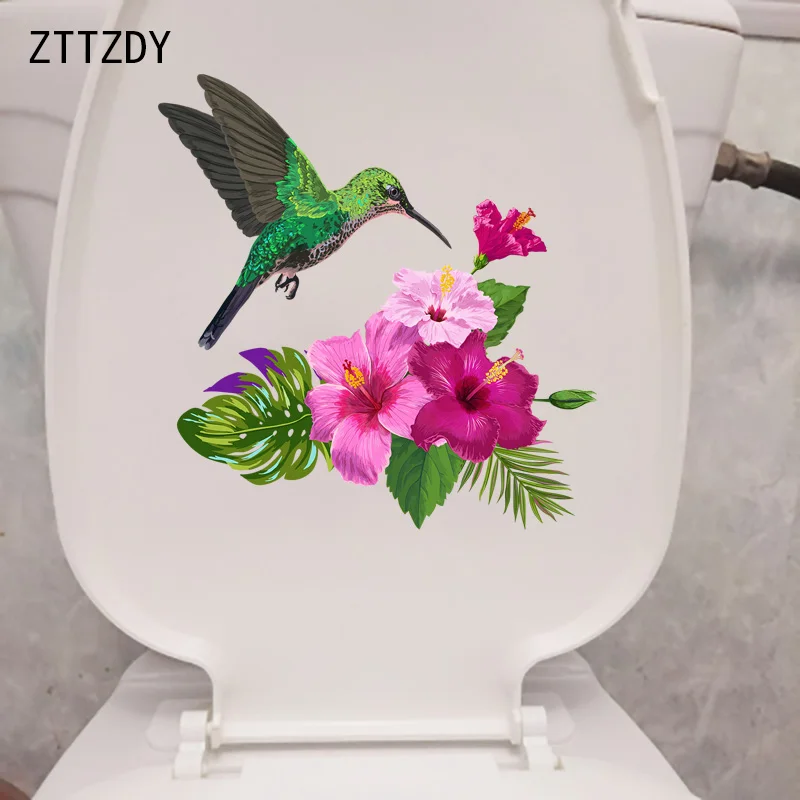ZTTZDY 23,5 24,5 см Колибри цветок гибискуса модные наклейки на унитаз домашнее украшение на стену T2-1330