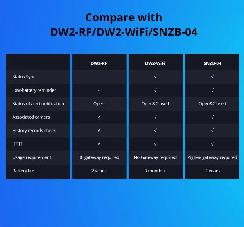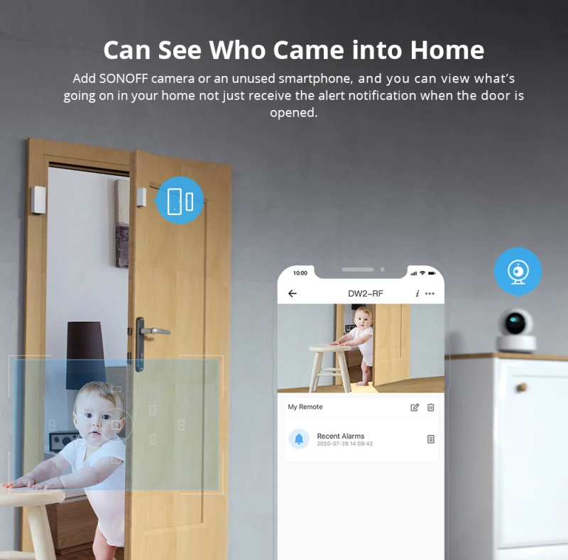 Двери и окна как входы и выходы являются самыми слабыми точками вашего дома. Незакрепленная дверь или окно-это очевидный знак «Добро пожаловать» для грабителя, поэтому датчики двери/окна также известны как «входной датчик». Как одно из самых популярных устройств домашней безопасности, DW2-RF беспроводного датчика двери/окна достаточно умного, чтобы вы могли узнать, открыта ли ваша дверь или окно, и он может не только отправлять вам уведомления об оповещении, но также Узнайте, когда открыта Входная точка, чтобы убедиться, что ваш дом в безопасности.