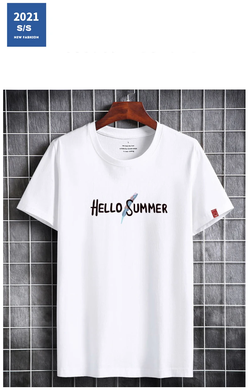 Мужская хлопковая футболка с коротким рукавом, модная мужская облегающая футболка большого размера, топ с круглым вырезом, летняя белая футболка, 2021