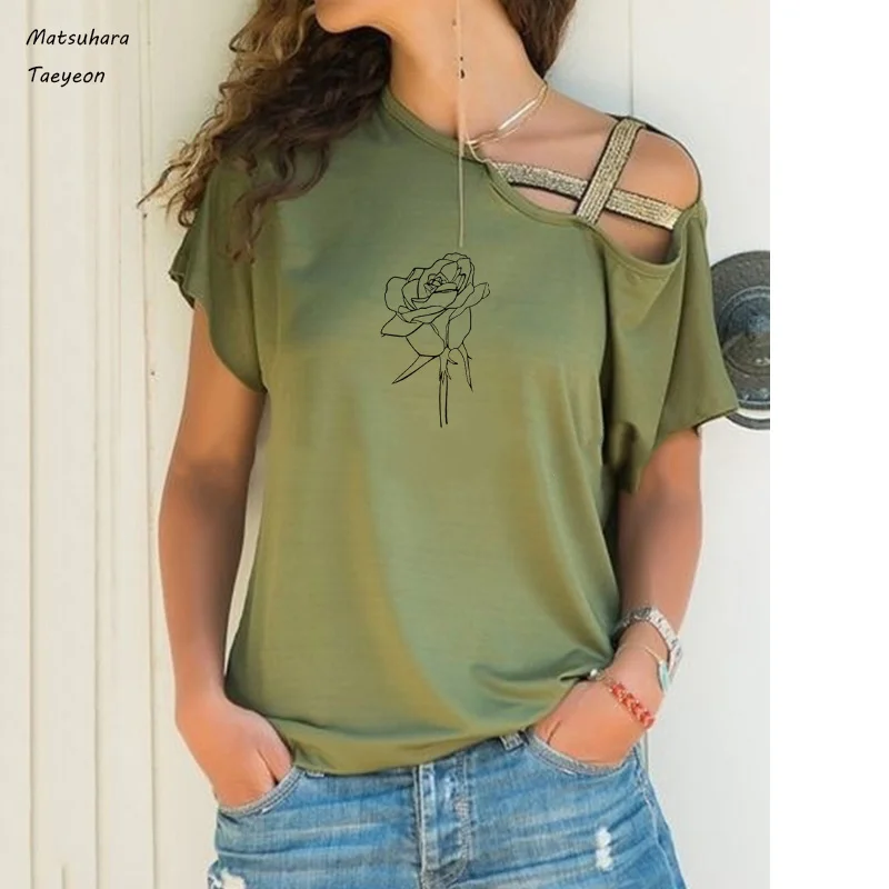 Футболка женская хлопковая с косым плечом, модная пикантная рубашка...