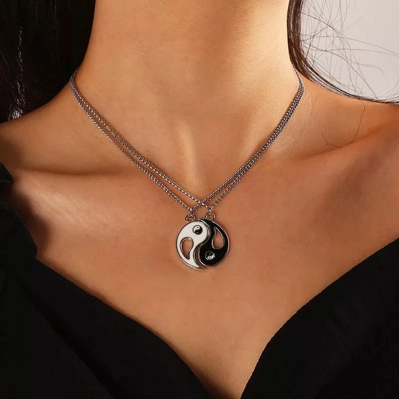 Пара в китайском стиле Тай Чи, черно-белое ожерелье с узором, два ч...