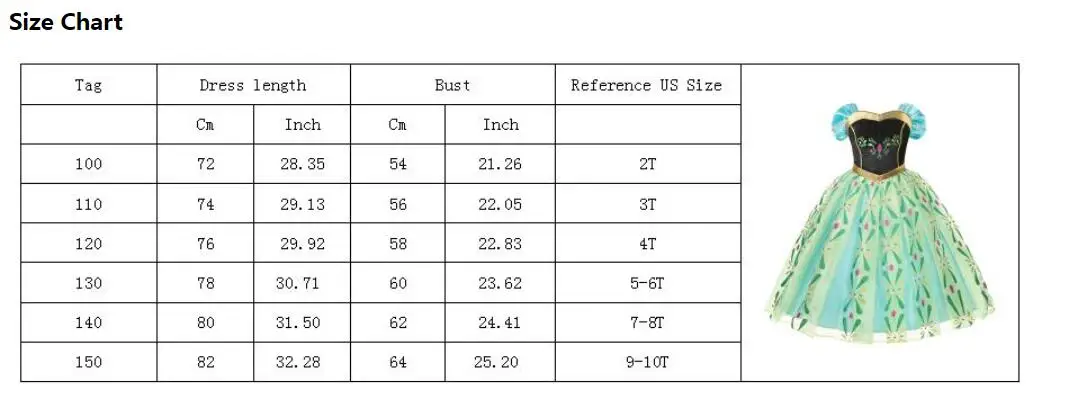 Название: платье принцессы для маленьких девочек; Детский карнавальный костюм Анны; Детское платье Снежной Королевы; Вечерние платья на День рождения; Одежда для девочекМатериал: полиэстер, хлопок, сетка, тюльВес: около 0,25-0,33 кг/шт.Возраст: 2 - 10 лет CNРазмер: 100-110-120-130-140-150 СШАРазмеры: 2T,3T,4T, От 5 до 6 лет, От 7 до 8 лет, От 9 до 10 летПосылка: по вашему выбору + Opp сумка