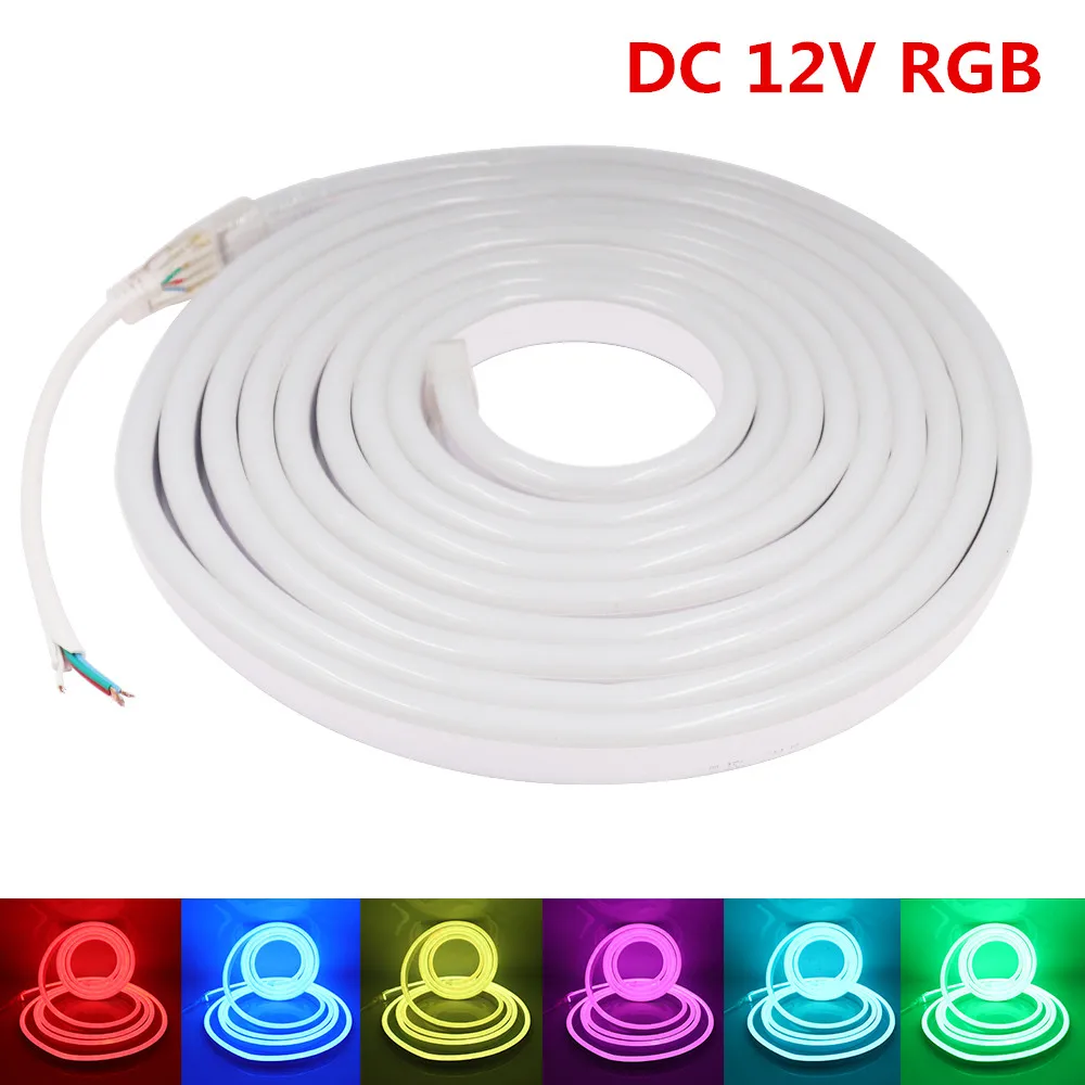 12 В постоянного тока RGB Неоновый свет водонепроницаемый белыйтеплый белыйкрасныйзеленыйсинийрозовый Гибкая неоновая вывеска 5050 2835 светодиодная полоса