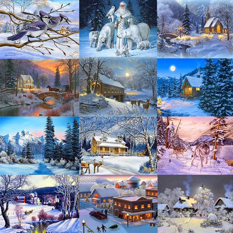 Алмазная 5D картина сделай сам, зимняя снежная картина с квадратными стразами, фото на заказ, красочная Мозаика Ручной Работы Стразы, Декор стен для домашней комнаты icon star icon star icon star icon star icon star