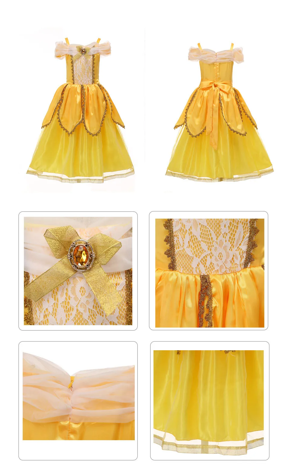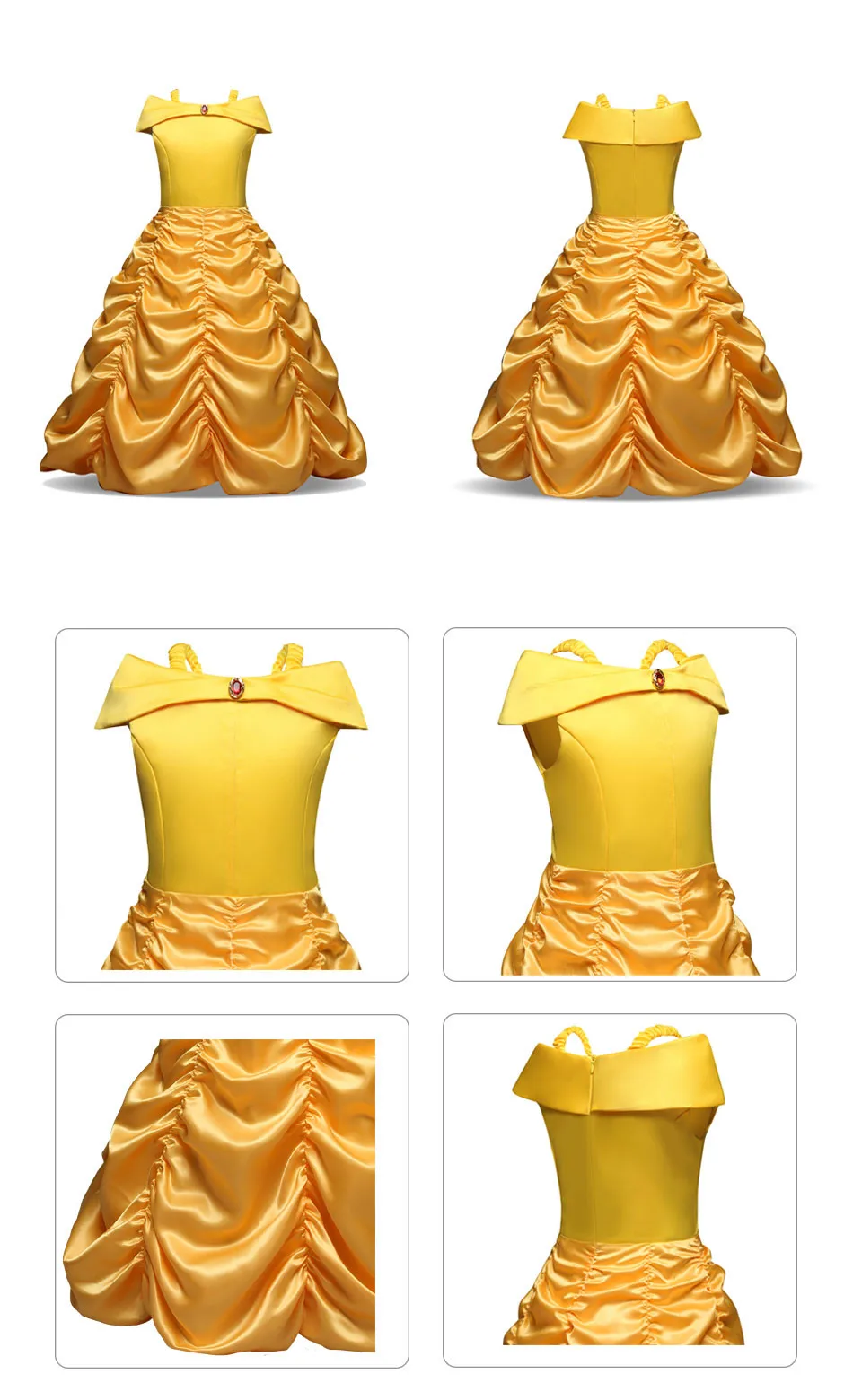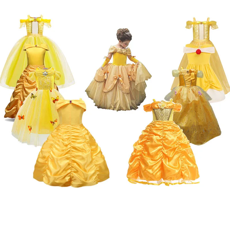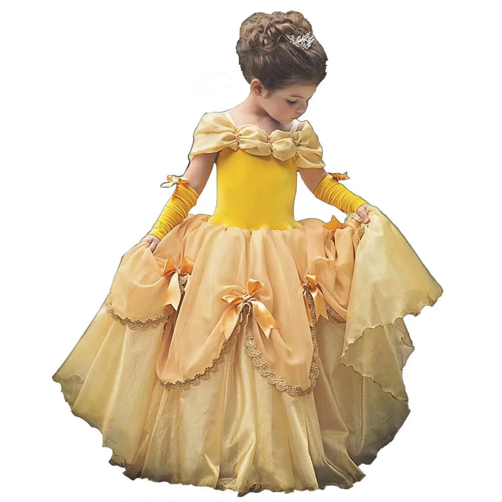 Платье принцессы Белль для девочек, детское бальное платье с цветочным рисунком, для Хэллоуина, костюм Беллы из красавицы и чудовища, детское платье для дня рождения