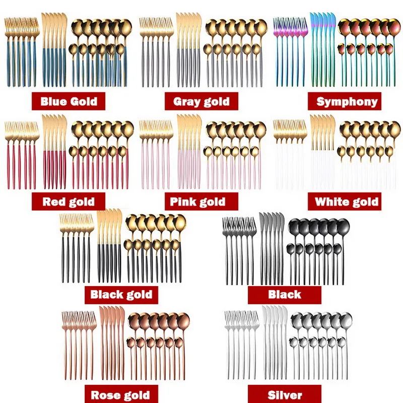 Цвета: черный, золотистый, Комплектная посуда Золотой Нержавеющаясталь металлический столовый набор для кухни зеркало золотого цвета посуда набор Ножи вилка обеденная ложка набор