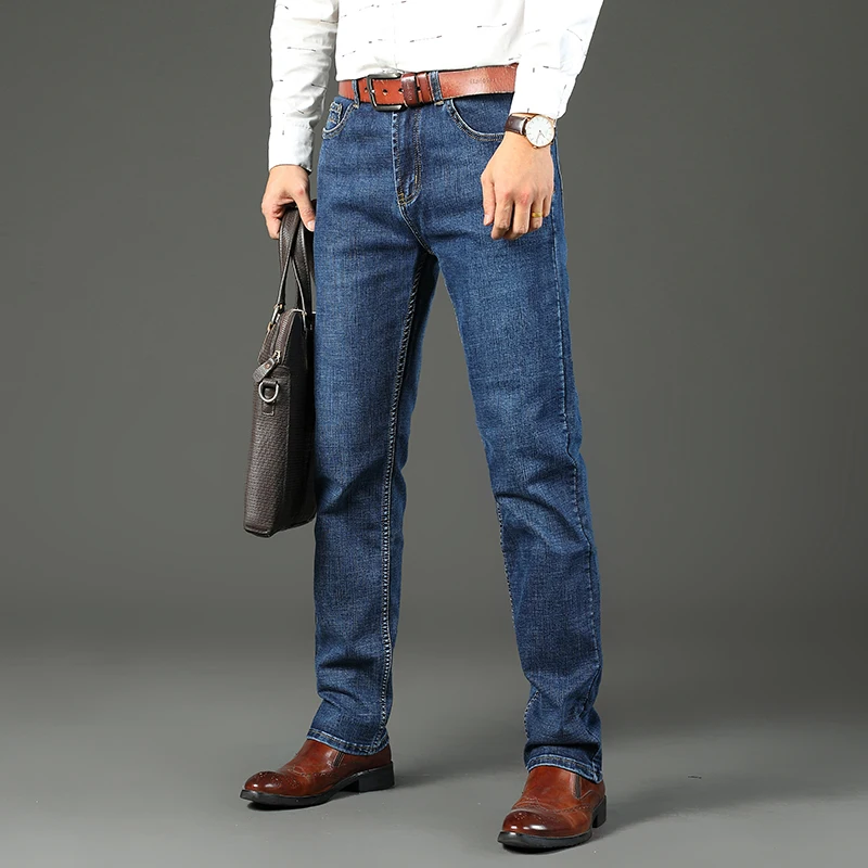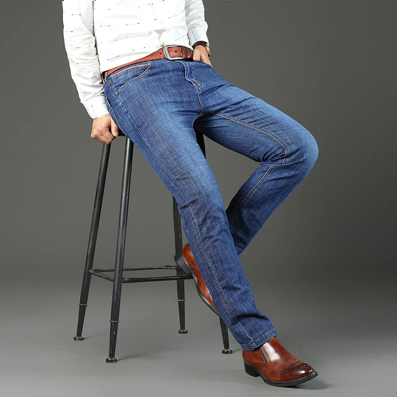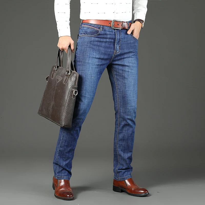 Мужские деловые джинсы, Классические хлопковые Стрейчевые брюки на ...