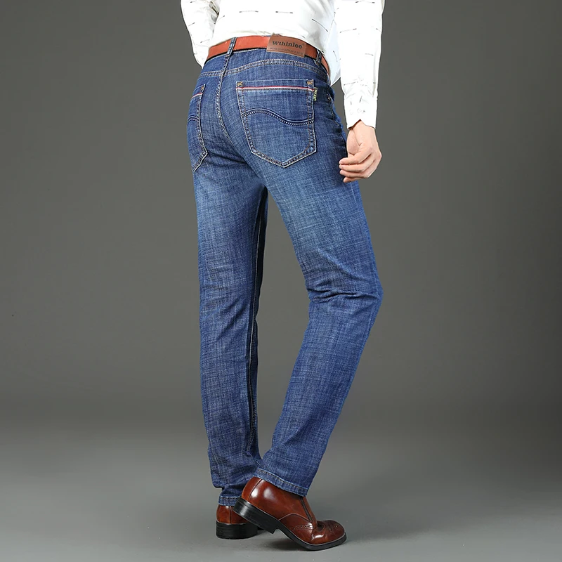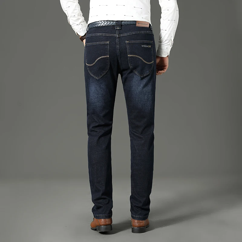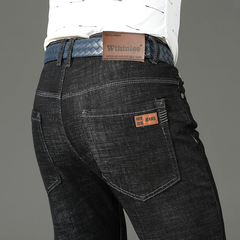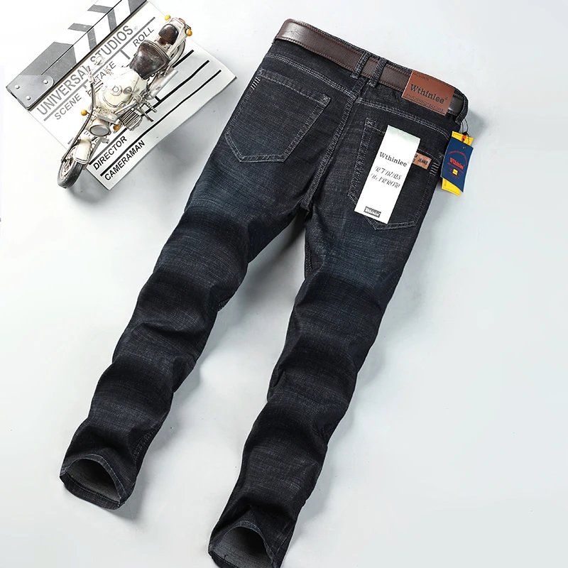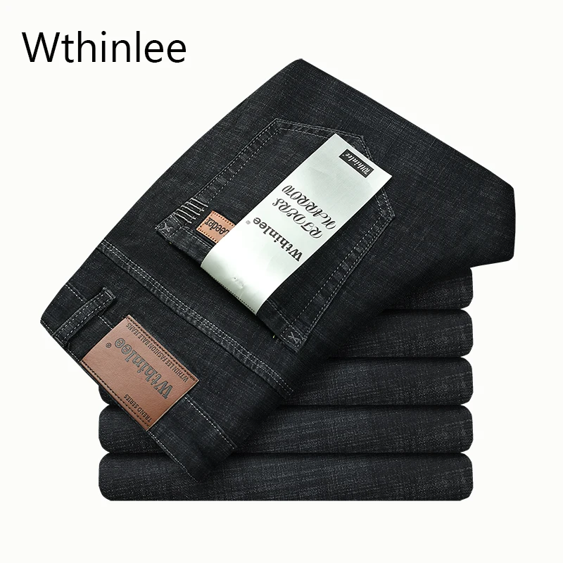 Мужские джинсы Whtinlee, Стрейчевые джинсы, прямые мужские брендовые хлопковые брюки, мужские деловые повседневные брюки