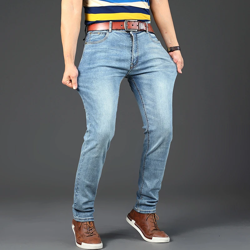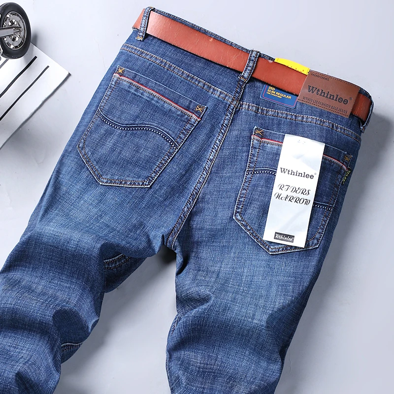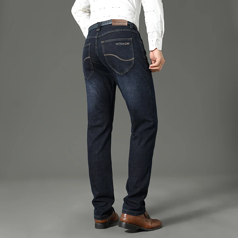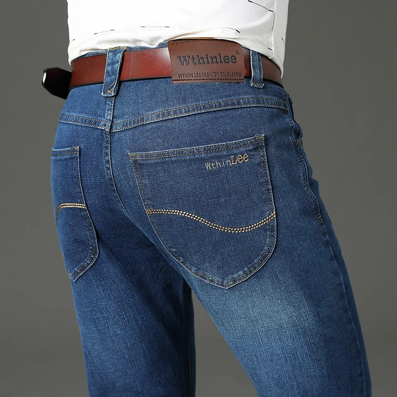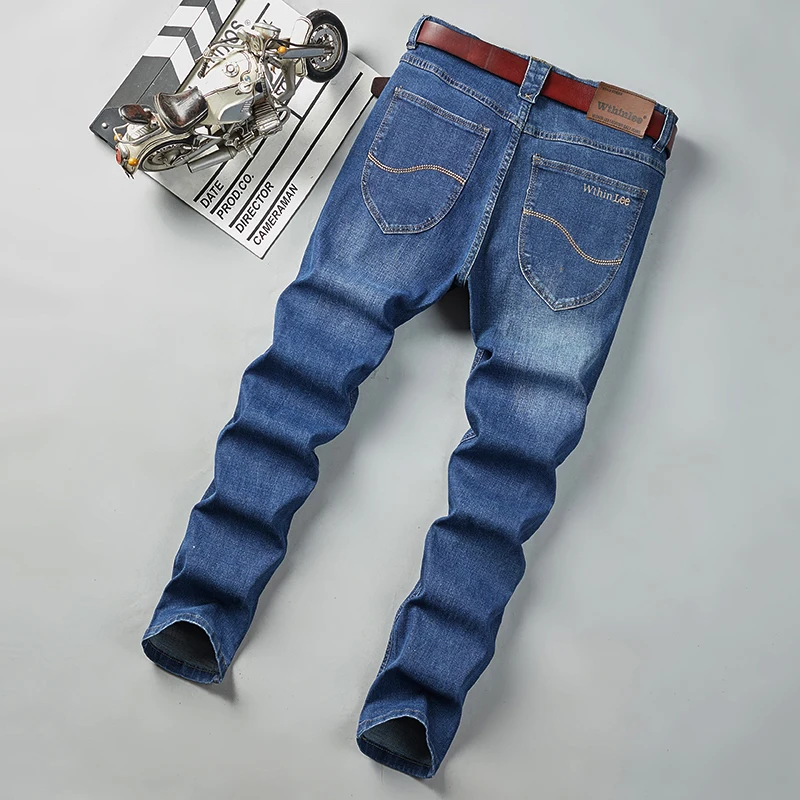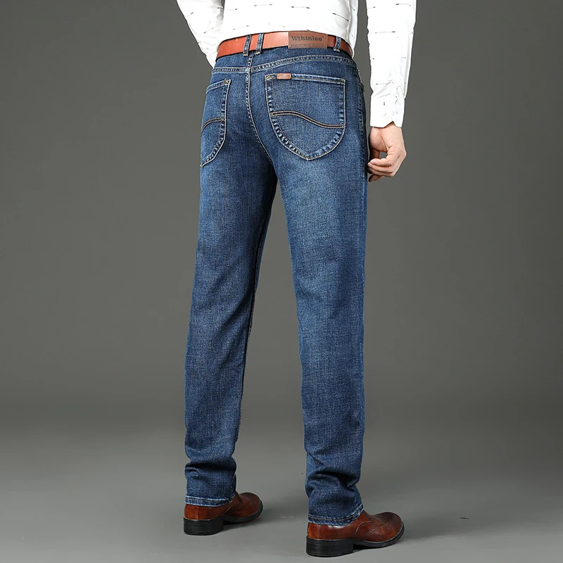 Мужские джинсы Whtinlee, Стрейчевые джинсы, прямые мужские брендовые хлопковые брюки, мужские деловые повседневные брюки